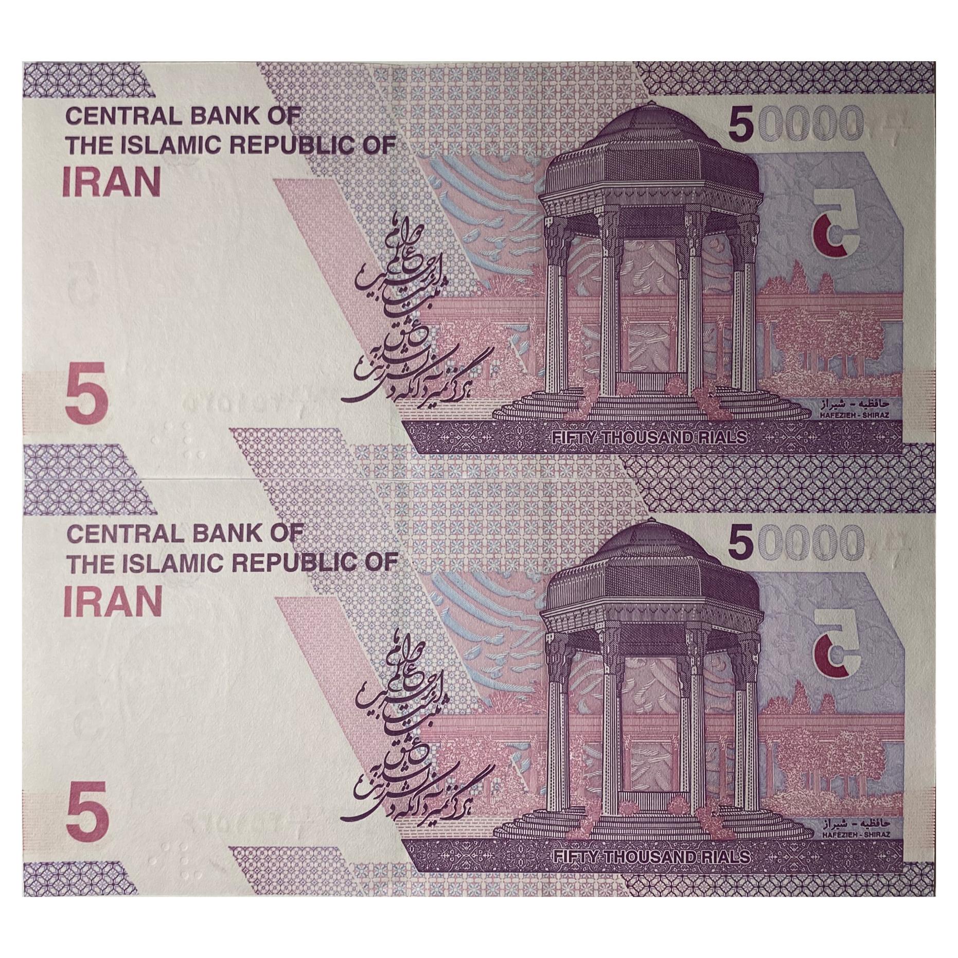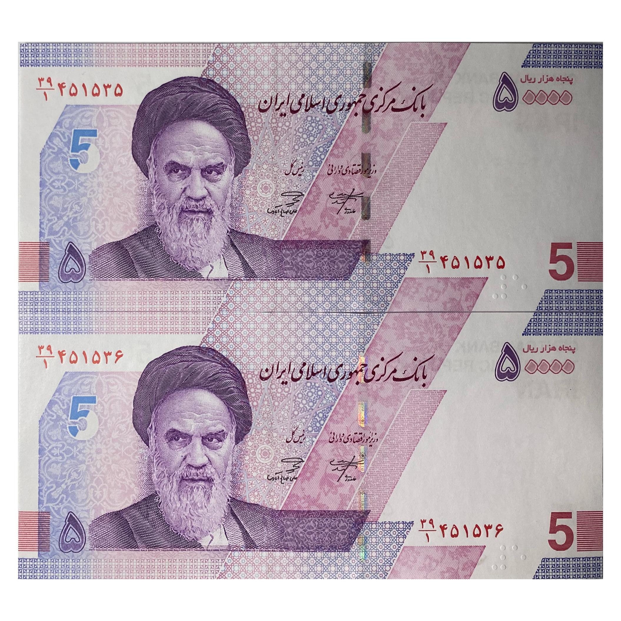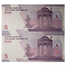 یک جفت اسکناس 5 هزار تومنی جدید، امضای آینده دار خاندوزی و صالح آبادی، سوپر بانکی، شماره عین تصویر تقدیم می شود.