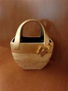 گلدان گلدون طرح کیف پروانه طلایی مجسمه کیف قد 20 سانت ابعاد 15در8