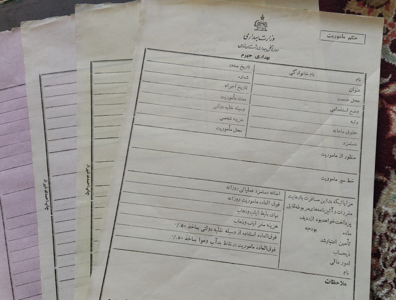 برگ حکم ماموریت بهداری جهرم 4برگی