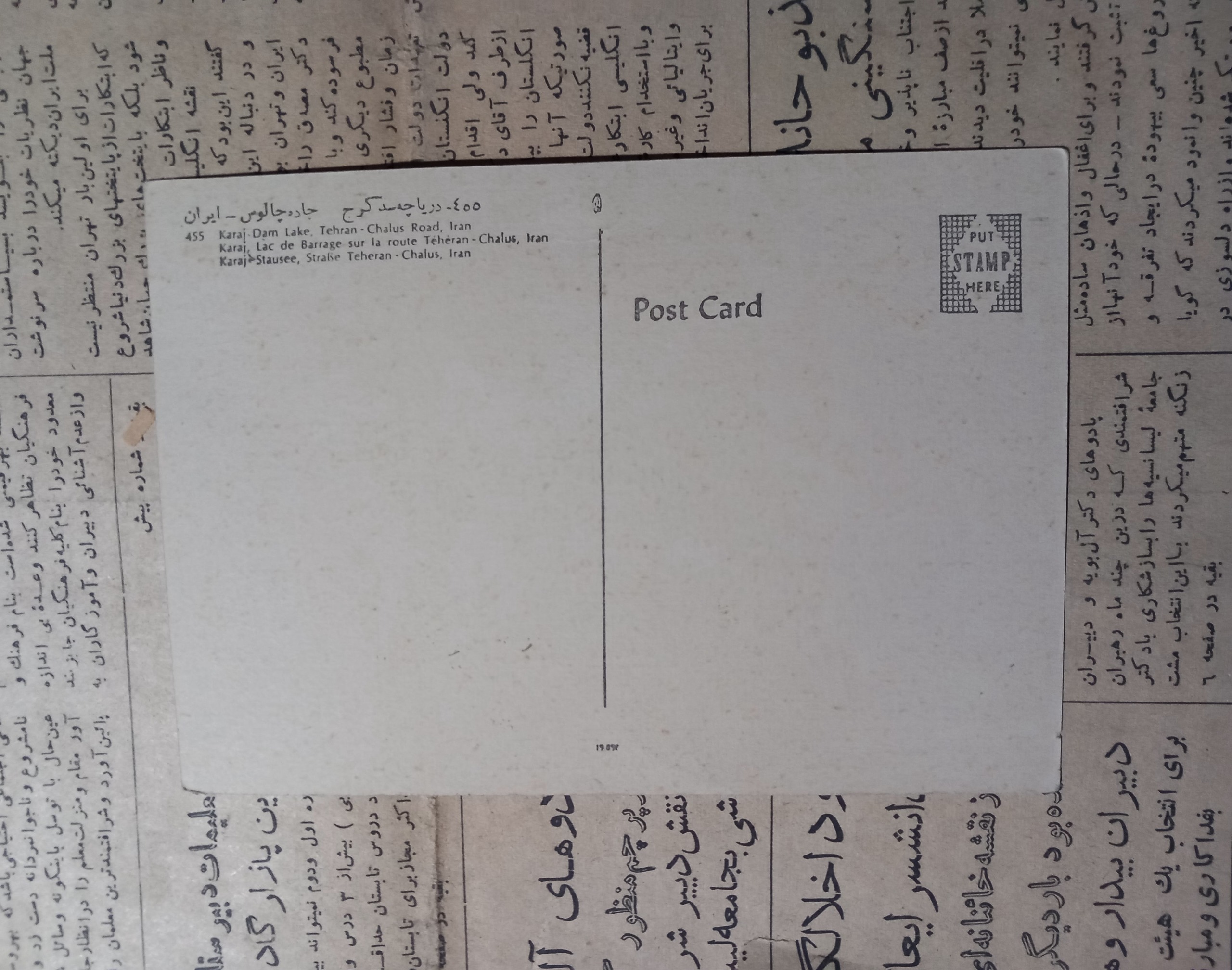 کارت پستال .دریاچه سد کرج . چالوس