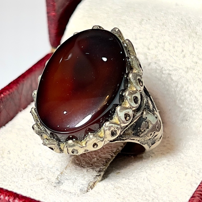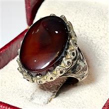 انگشتر ارزنده عقیق آلبالویی اصیل یمنی