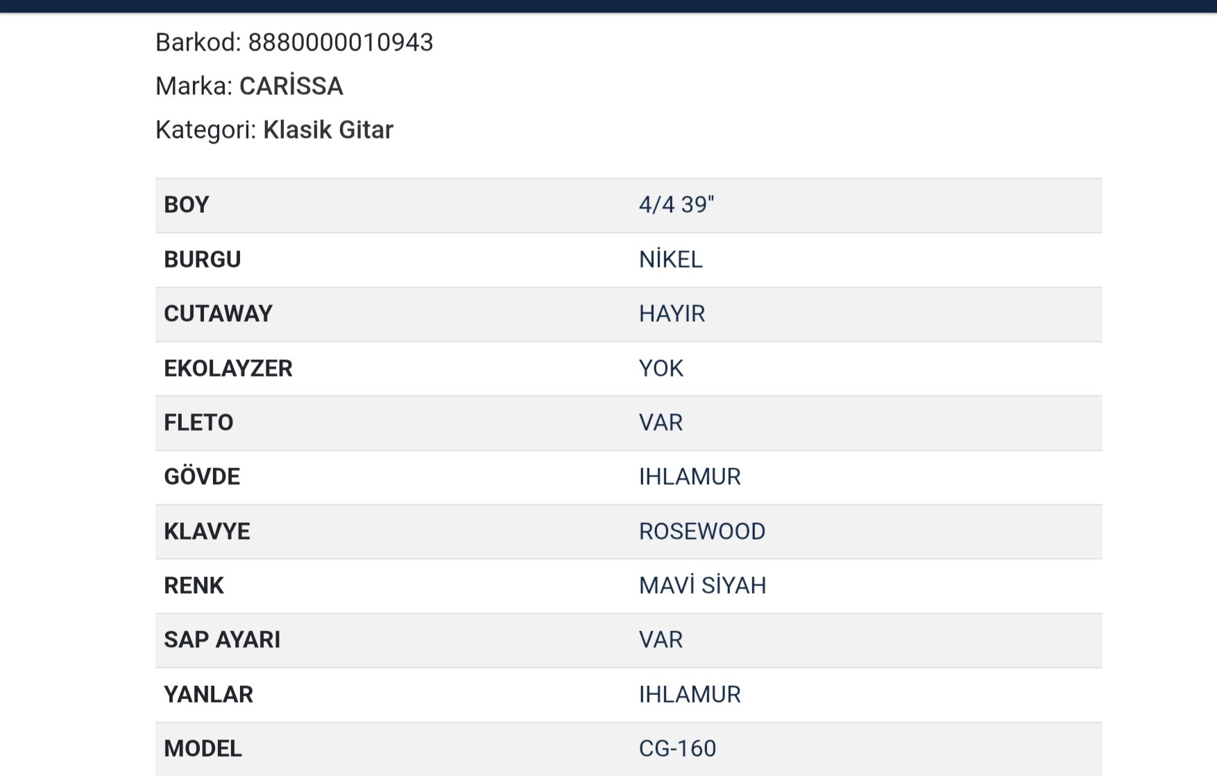 گیتار carissa مدل cg160