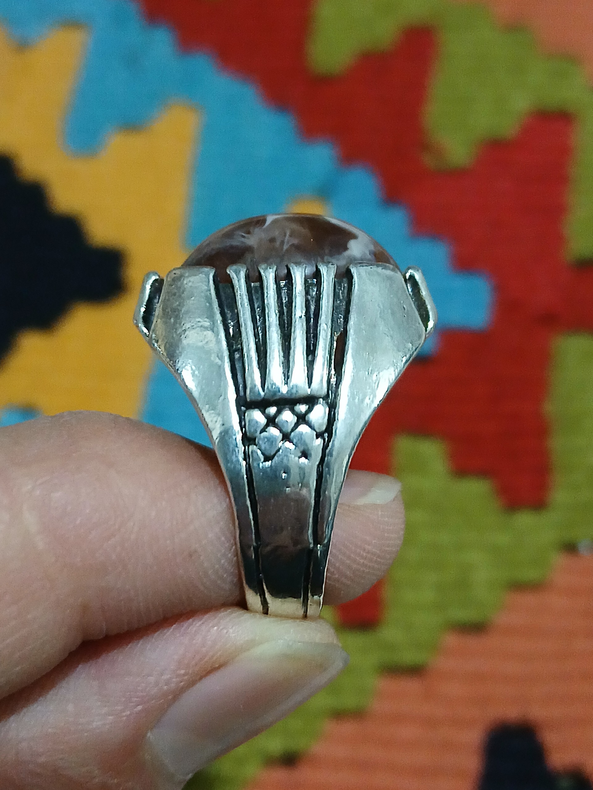 انگشتر زیبا نگین قهوه ای طرح نقره