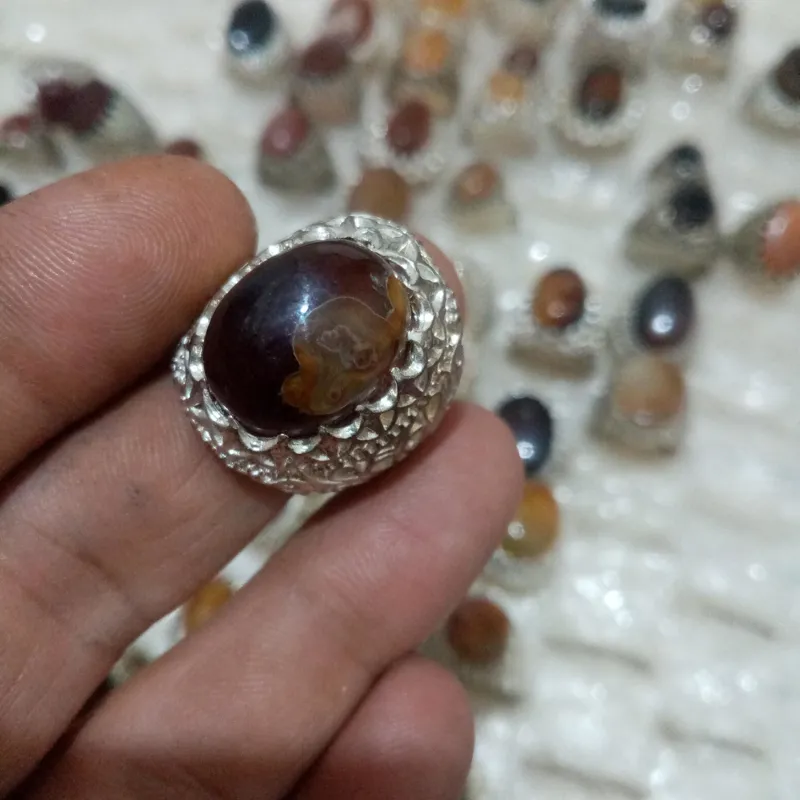 انگشتر قدیمی عقیق روکش نقره