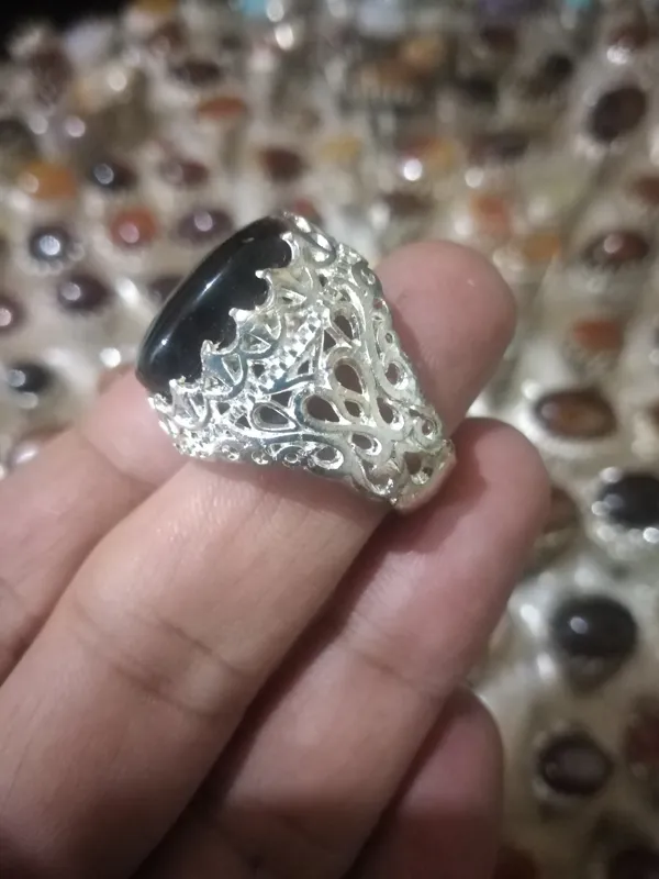 انگشتر قدیمی عقیق روکش نقره