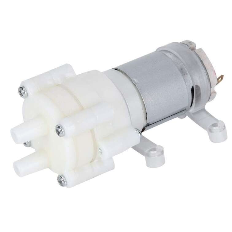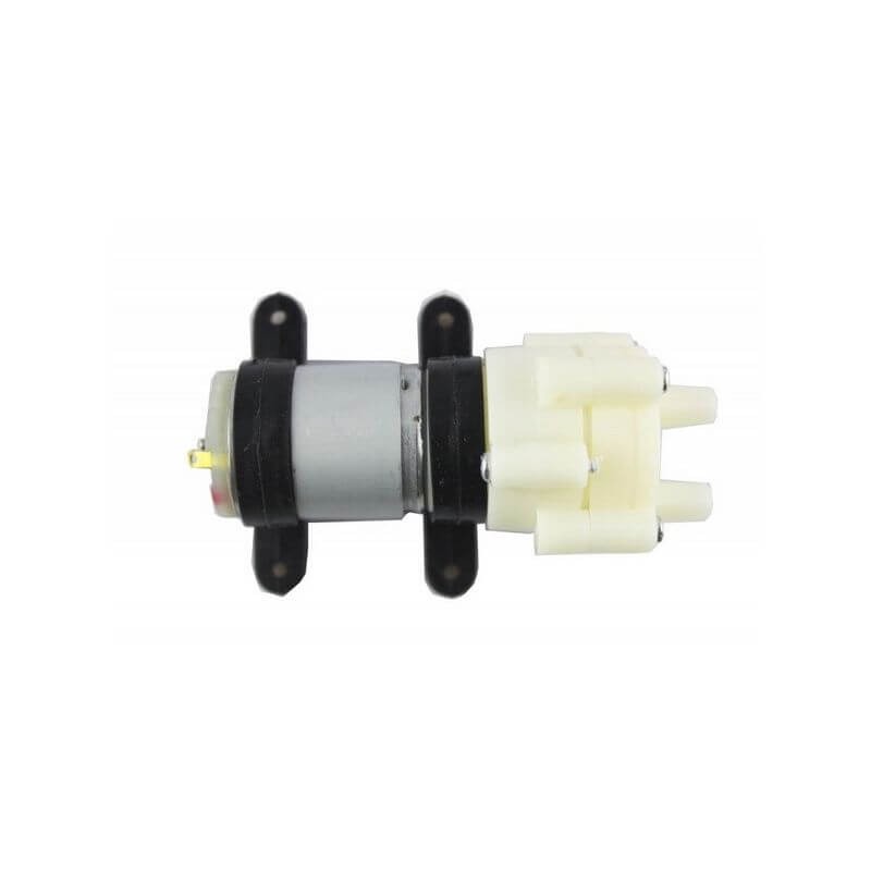 پمپ آب دیافراگمی که دارای ولتاژ کاری 6-12 ولت است و پرتاب آبی معادل 3 متر دارد. این پمپ دارای صدای متوسطی است تقریبا 45 دسیبل صدای کارکرد آن است شما از این پمپ میتوانید برای خنک کردن بورد های الکترونیکی در سیستم های و یا سیستم هایی که به پمپاژ آب در محدوده 3 تا 2 لیتر بر دقیقه نیاز دارند استفاده کنید .سیستم کارکرد این پمپ بصورت دیافراگمی هست که میتواند آب را از ارتفاع 1 الی 2 متری مکش کرده و انتقال دهد.بست سیلیکون سیاه رنگ جهت پیچ کردن و ثلبت نگه داشتن پمپ و جلوگیری از لرزش پمپ استفاده میشود. این پمپ آب به طور عمده در مدل آزمایشی ، استخر بادی ، شستشوی ماشین ، آبیاری ، زمان پر شدن آب معدنی و غیره استفاده می شود.