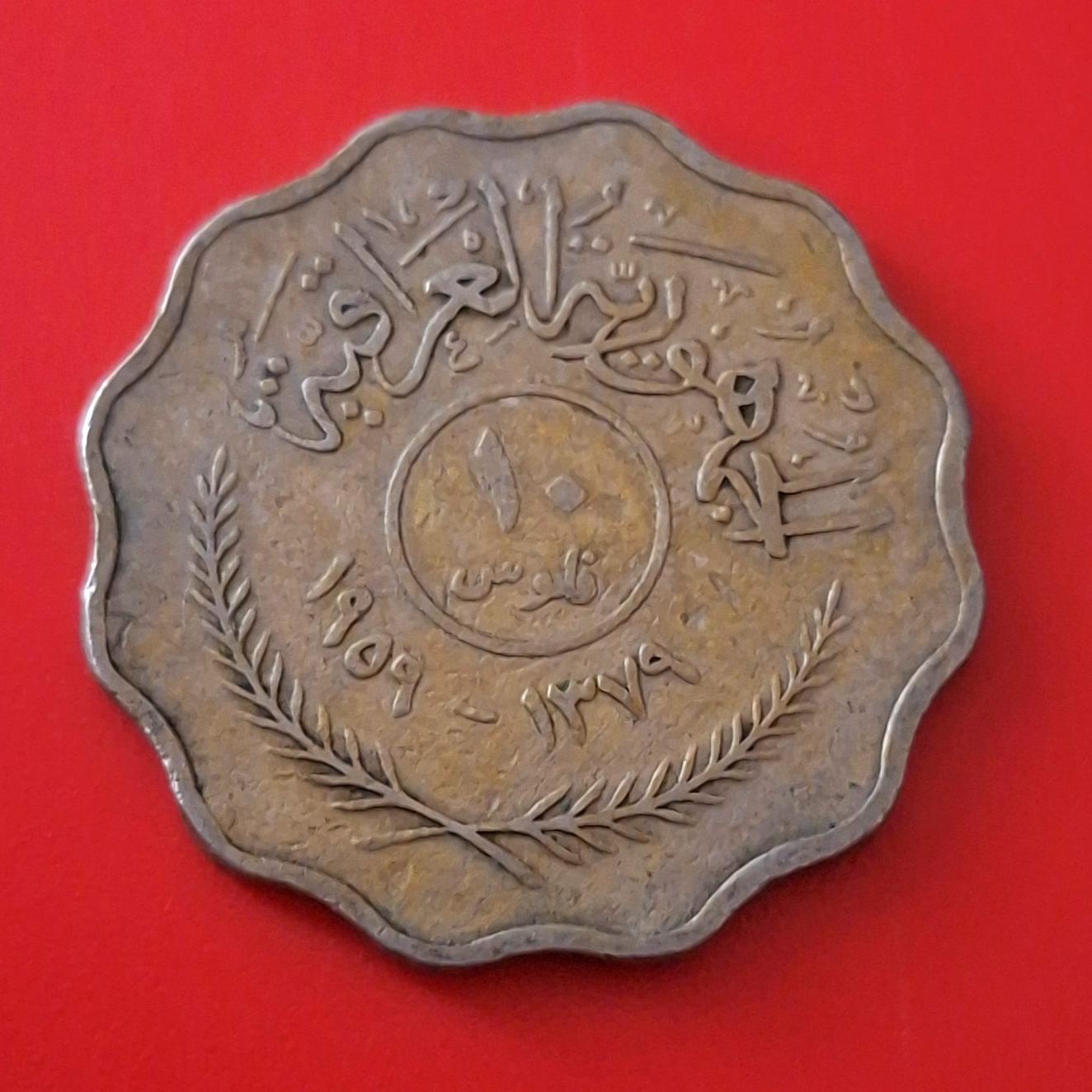 سکه ارزشمند و زیبای 10 فلوس کشور عراق سال 1959