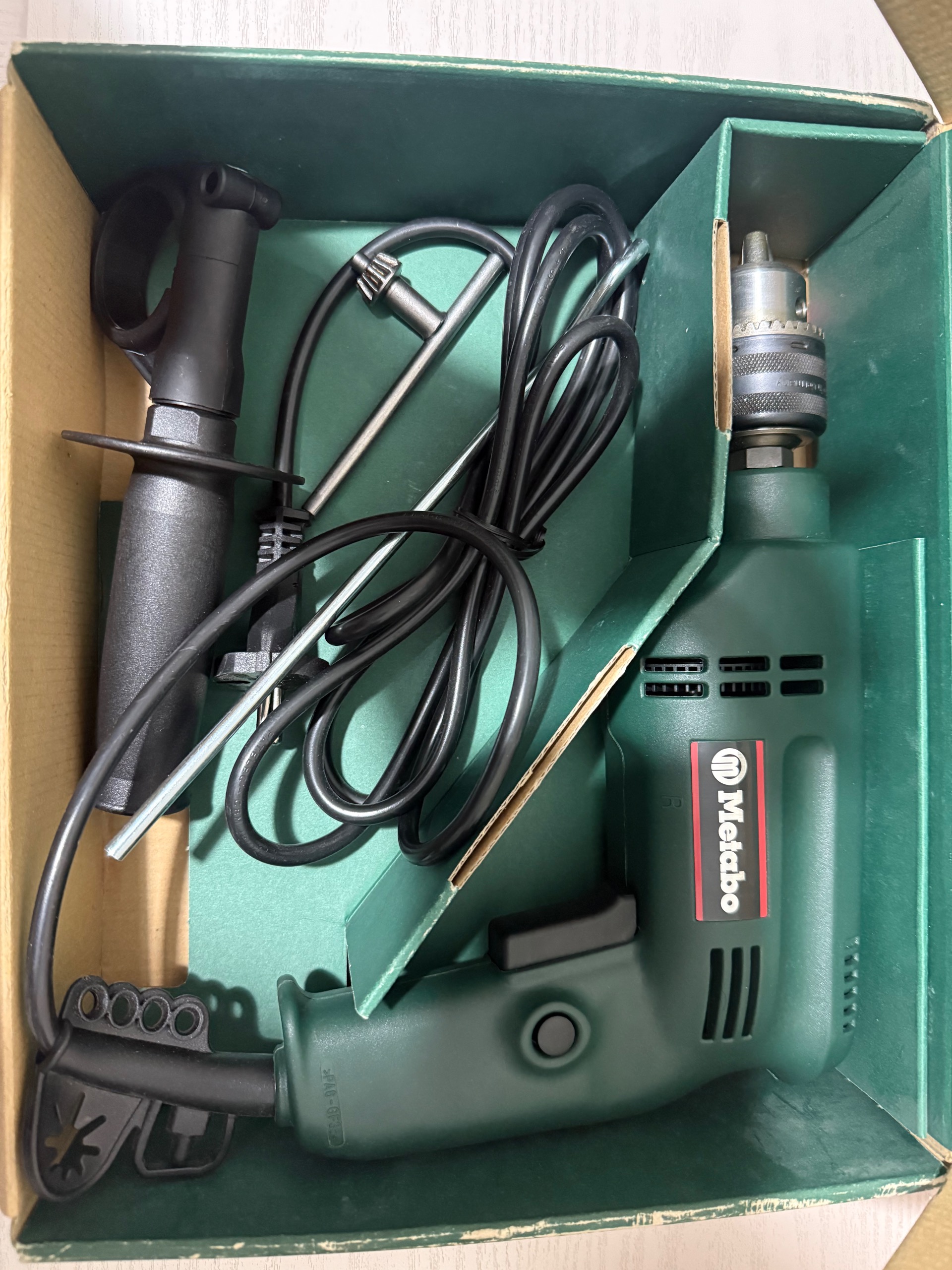 دریل متابو 600 وات ساخت آلمان نو همه چیز تو عکس کاملا مشخصه دریل راست گرد هست و چکشی و غیر چکش هم دارد توجه توجه دریل کاملا سالم و نو و تا به حال کار نکرده فقط در حد تست به برق زده شده که از سالم بودن دستگاه مطلع باشیم دستگاه به هیچ عنوان مرجوعی ندارد