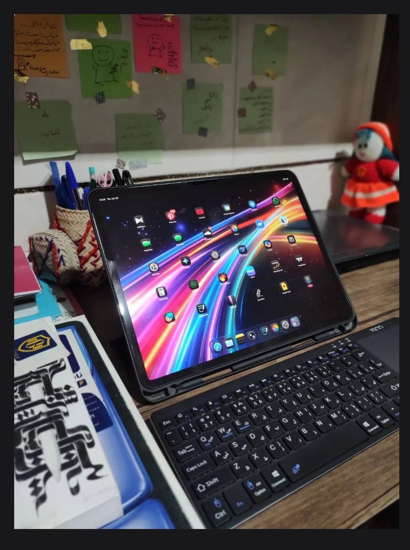 بار شارژ شده ت باتری 95 درصد 13 اینچ با 128 گیگ حافظه داخلی WiFi اقلام همراه آیپد قلم اپل پنسل پرو (نسل جدید)محافظ صفحه نمایش قاب چرمی اپل با جای شارژ و نگهداری قلم کیبورد بلوتوثی Tsco با موس پد ، مخصوص آیپد بیمه هم داره قیمت مقطوع هستش و ارسال به سرار استان
