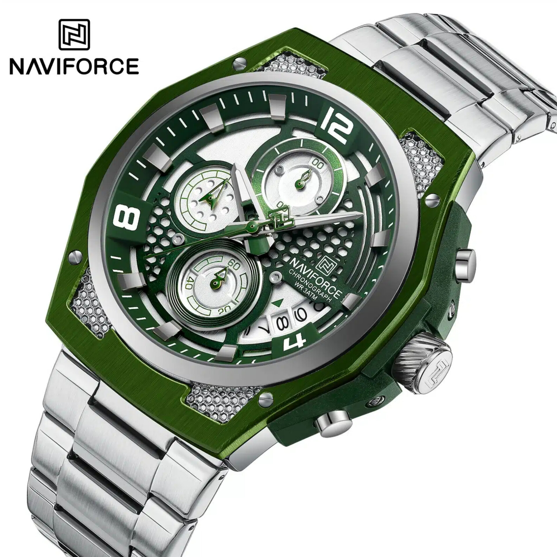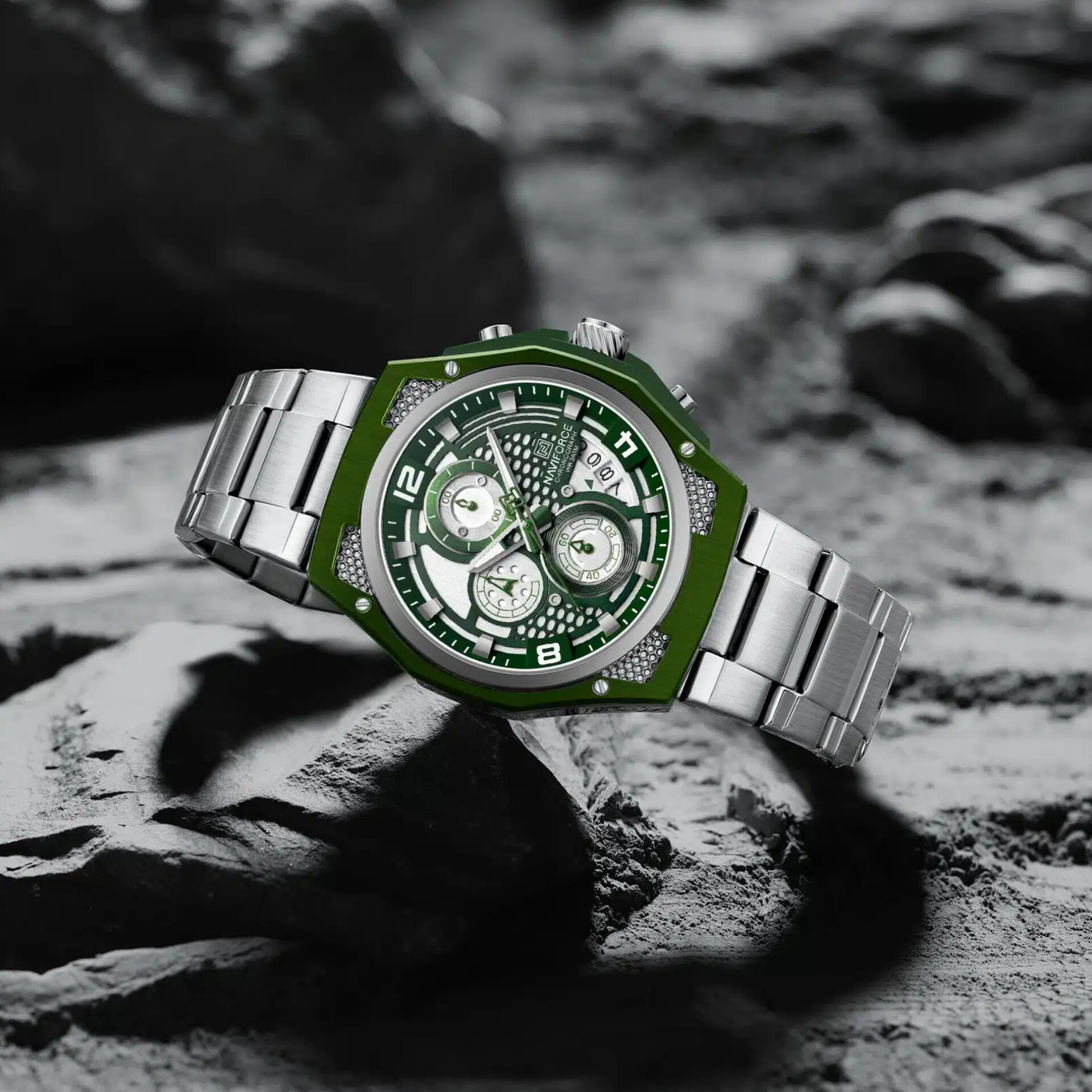 ساعت مردانه استیل NAVIFORCE کرنوگراف موتور ژاپن