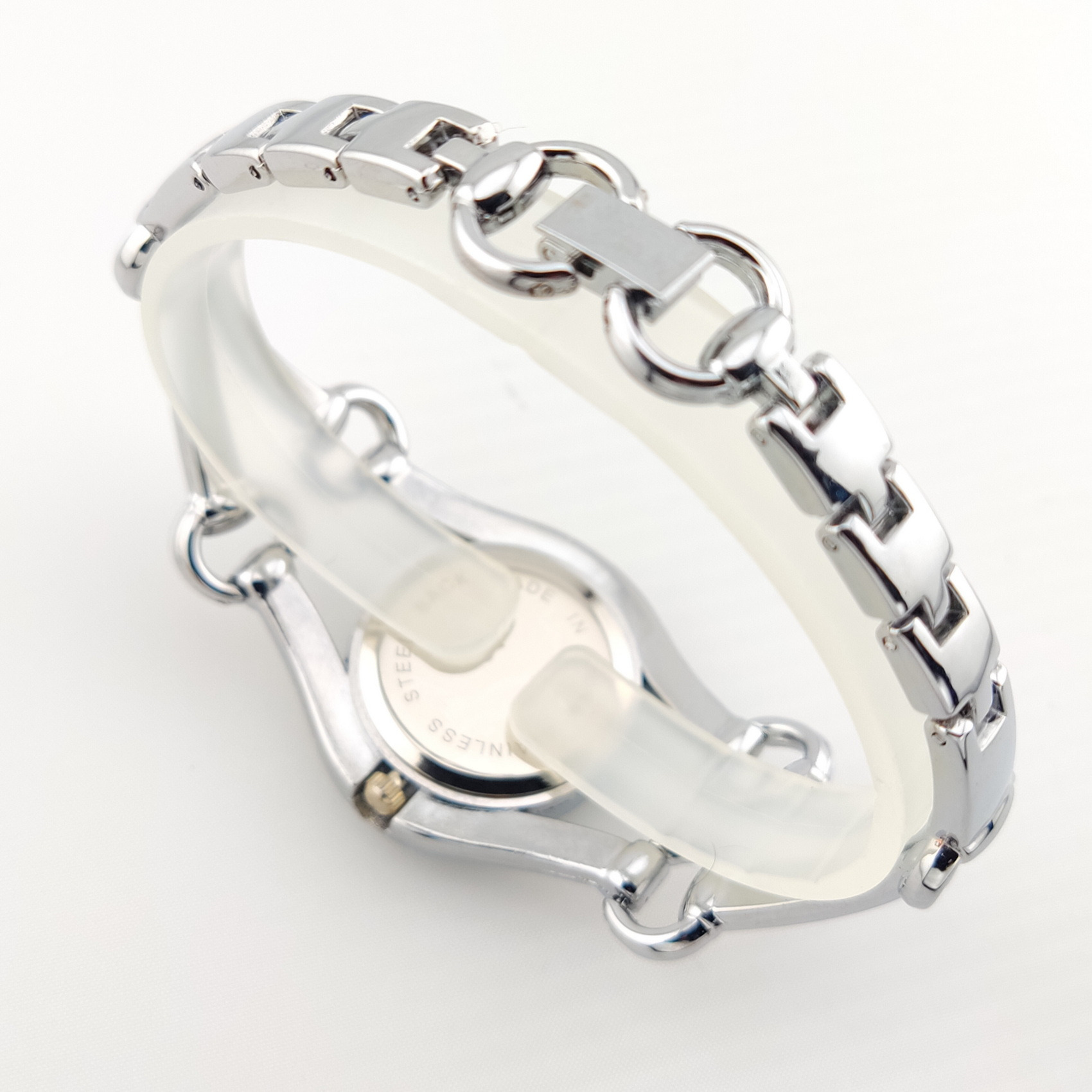 بدنه و بند استیل فلزی براق به رنگ نقره ای براق با قفل دستبندی