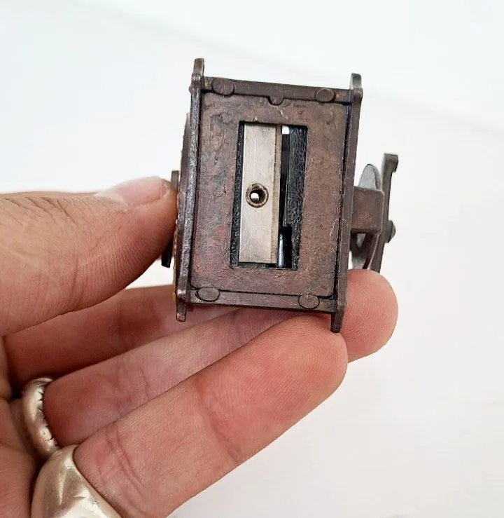 مداد تراش قدیمی فلزی چرخ دنده ها متحرک