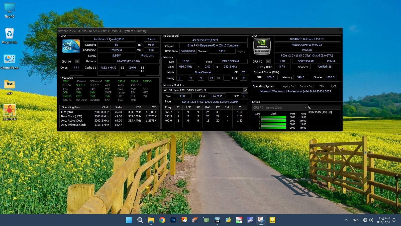 طبق عکس های4،3 تست اولیه با ویندوز 11 و CPU چهار هسته ای Q9650و16 گیگ رم DDR3گرفته شده)