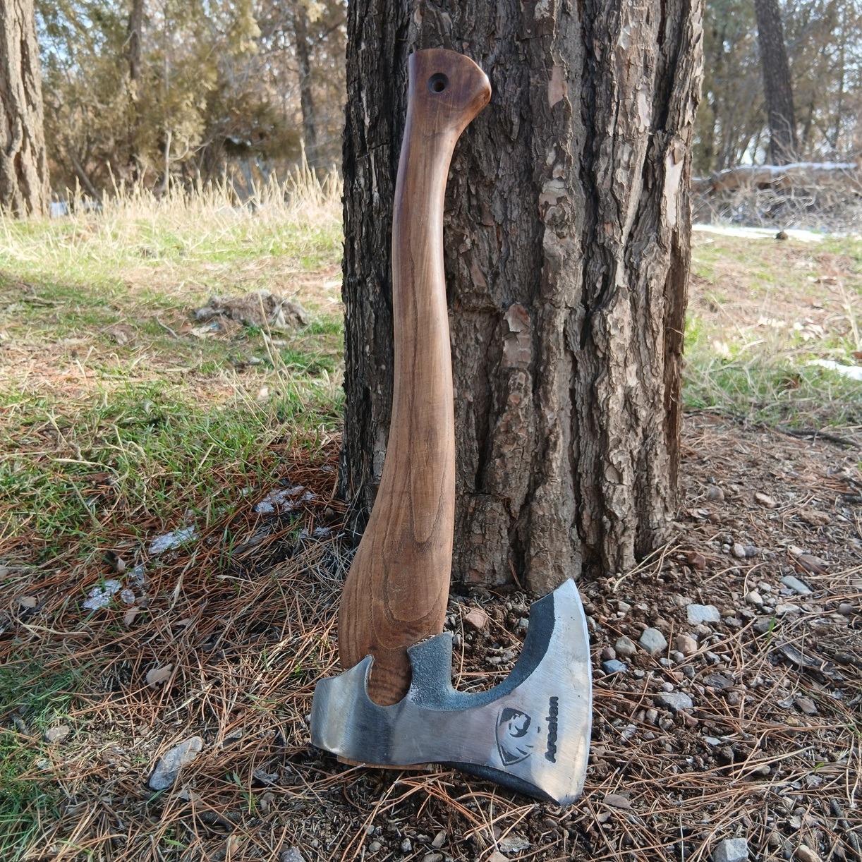 جنس تیغه فولاد آلیاژی کربن بالا و جنس دسته چوب زبان گنجشک (ون یا اش) میباشد