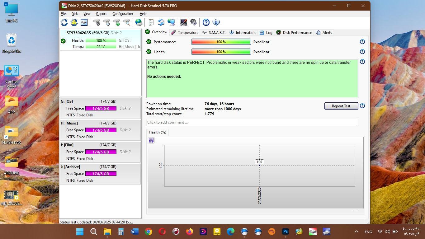 سلامت و کارایی هارد 100درصد