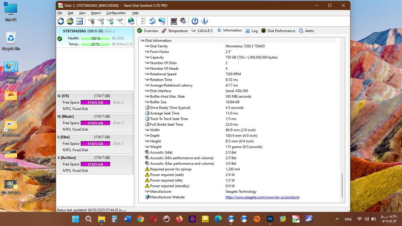 هارد750گیگSeagate-سلامت و کارایی100درصد کم کارکرد