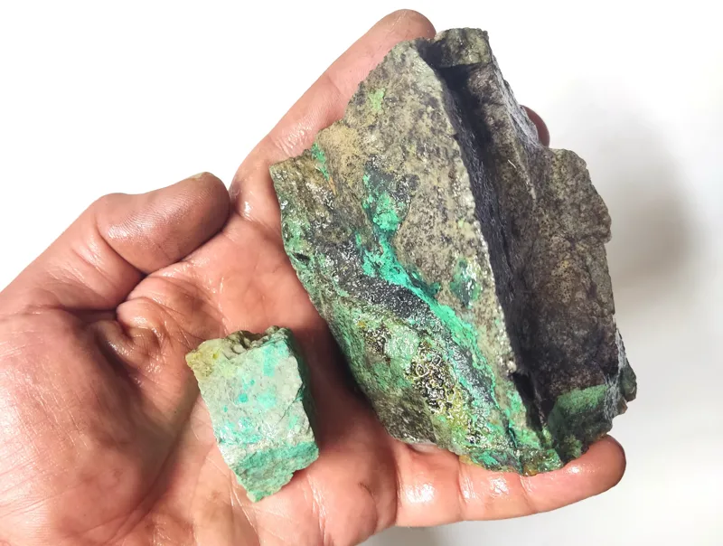 مجموعه کلوخه رگه مالاکیت و کریزوکولا