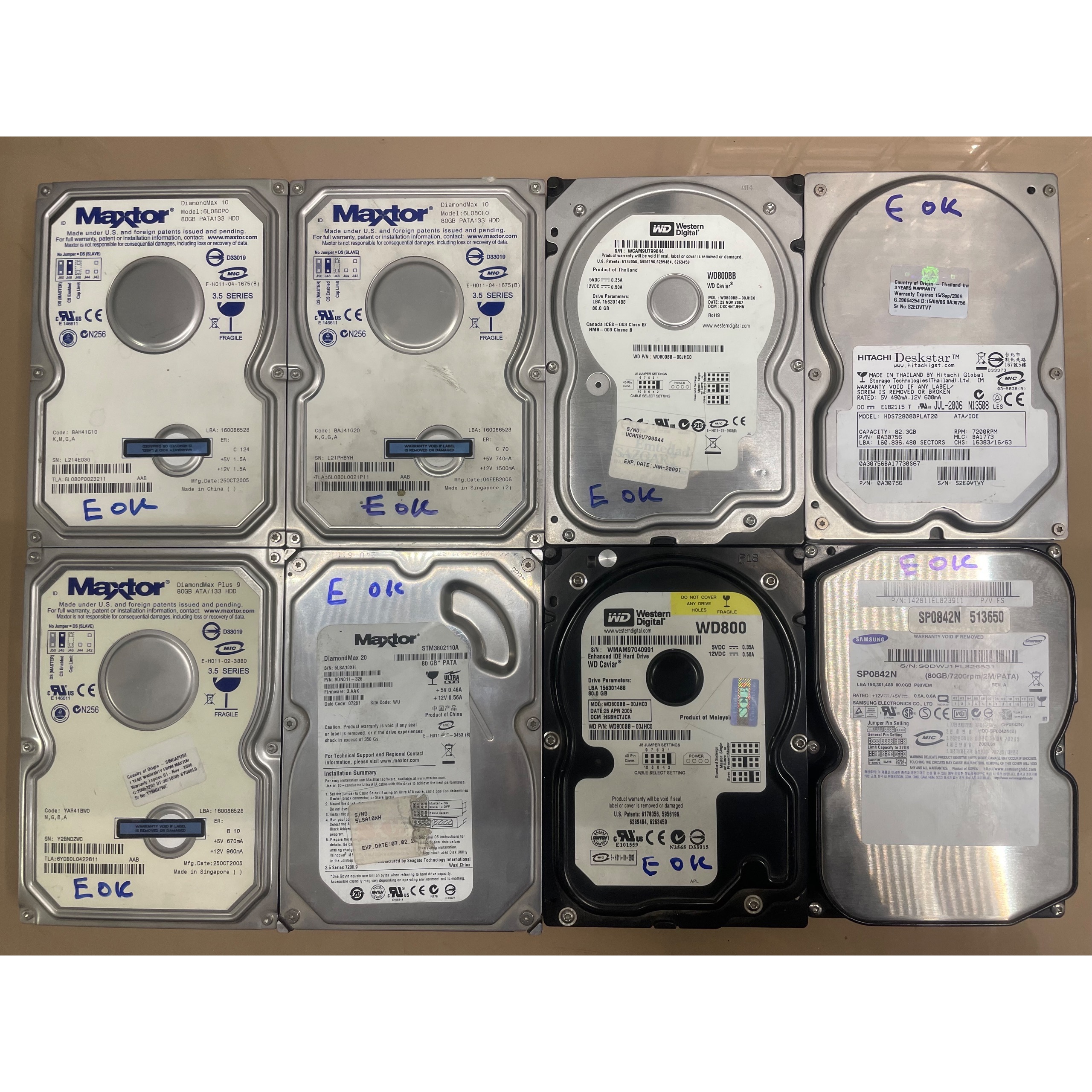 تعداد هشت عدد هارد هشتاد ای دی ای با مدل های مختلف سالم فرمت شده دارای سلامت های قابل قبول بدون ایراد