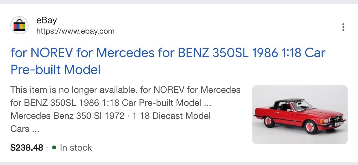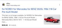ماکت آکبند مرسدس بنز sl350 نورو فرانسه سپر اروپایی مدل 1986 قیمت جهانی حدود 200 دلار