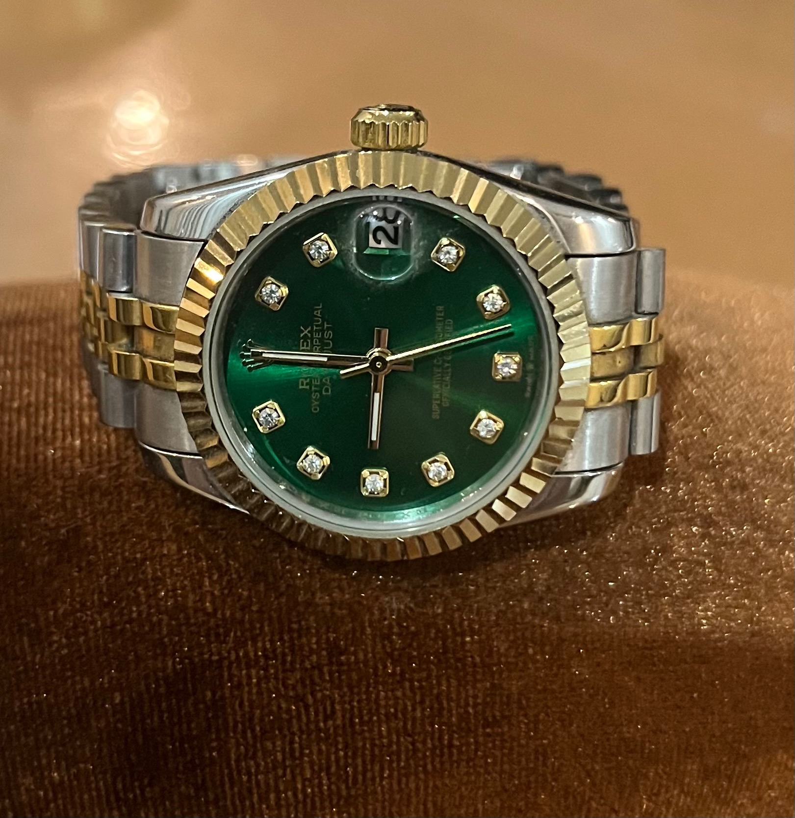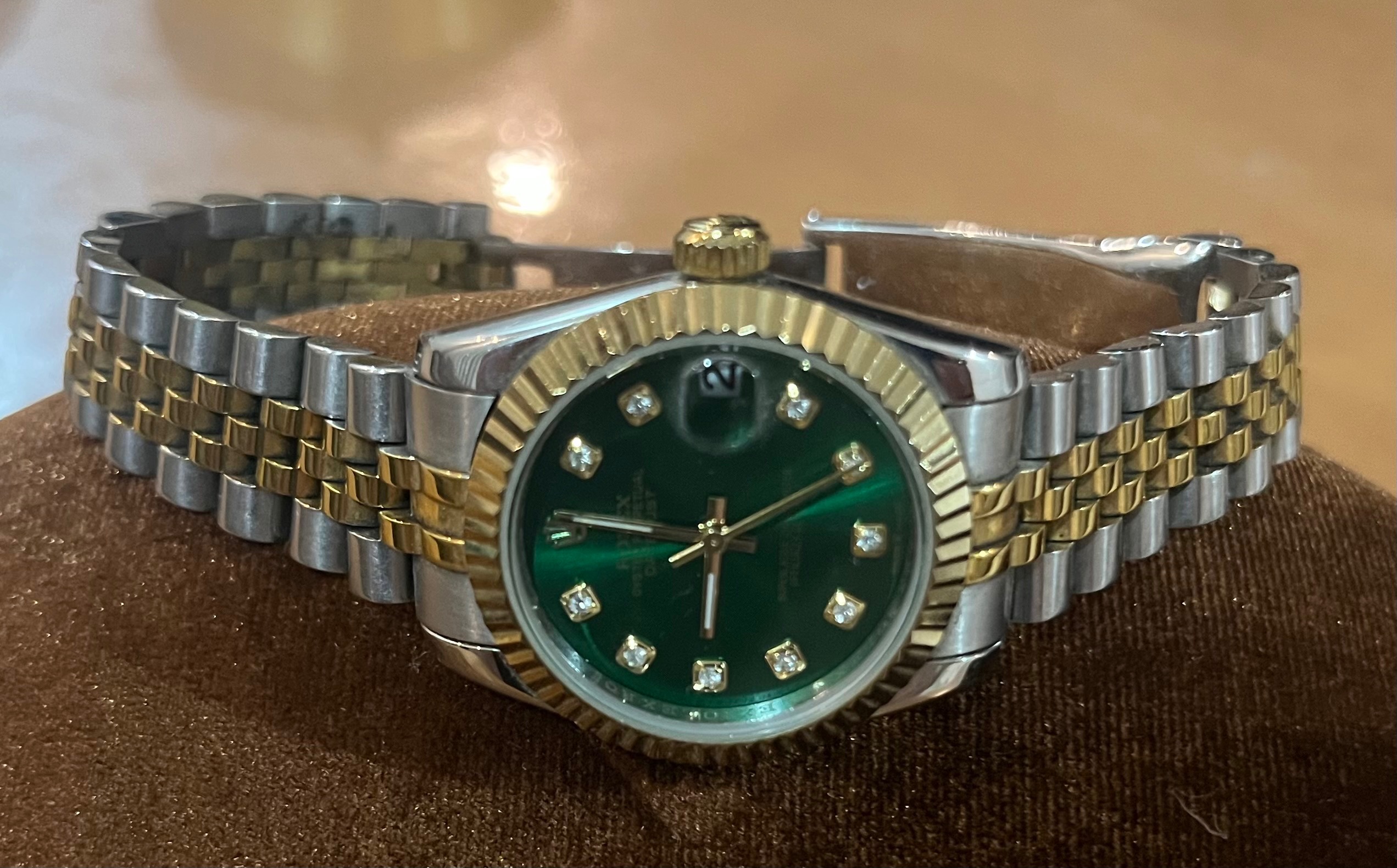 بند استیل و طلایی و صفحه سبز خوشرنگ و زیبا