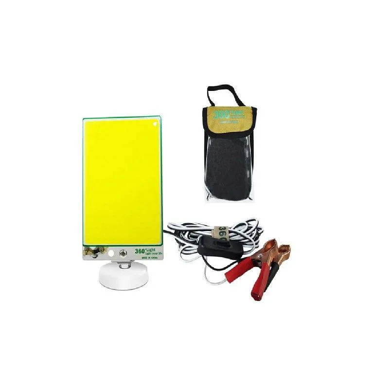 لامپ سیار ماشین پایه دار ماشین 360 لایت با ولتاژ 12 ولت دارای کابل 3 متری می باشد. که به وسیله چنگکهایی مخصوص به باتری اتومبیل متصل می شود. لامپ سیار ماشین پایه دار ماشین 360 لایت برق خود را از باتری خودرو تامین می کند.، علاوه بر این دارای طراحی شیک و جمع و جوری می باشد. که می توان آن را به راحتی حمل و جابجایی کرد.
