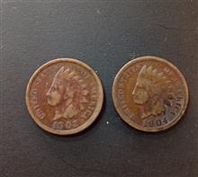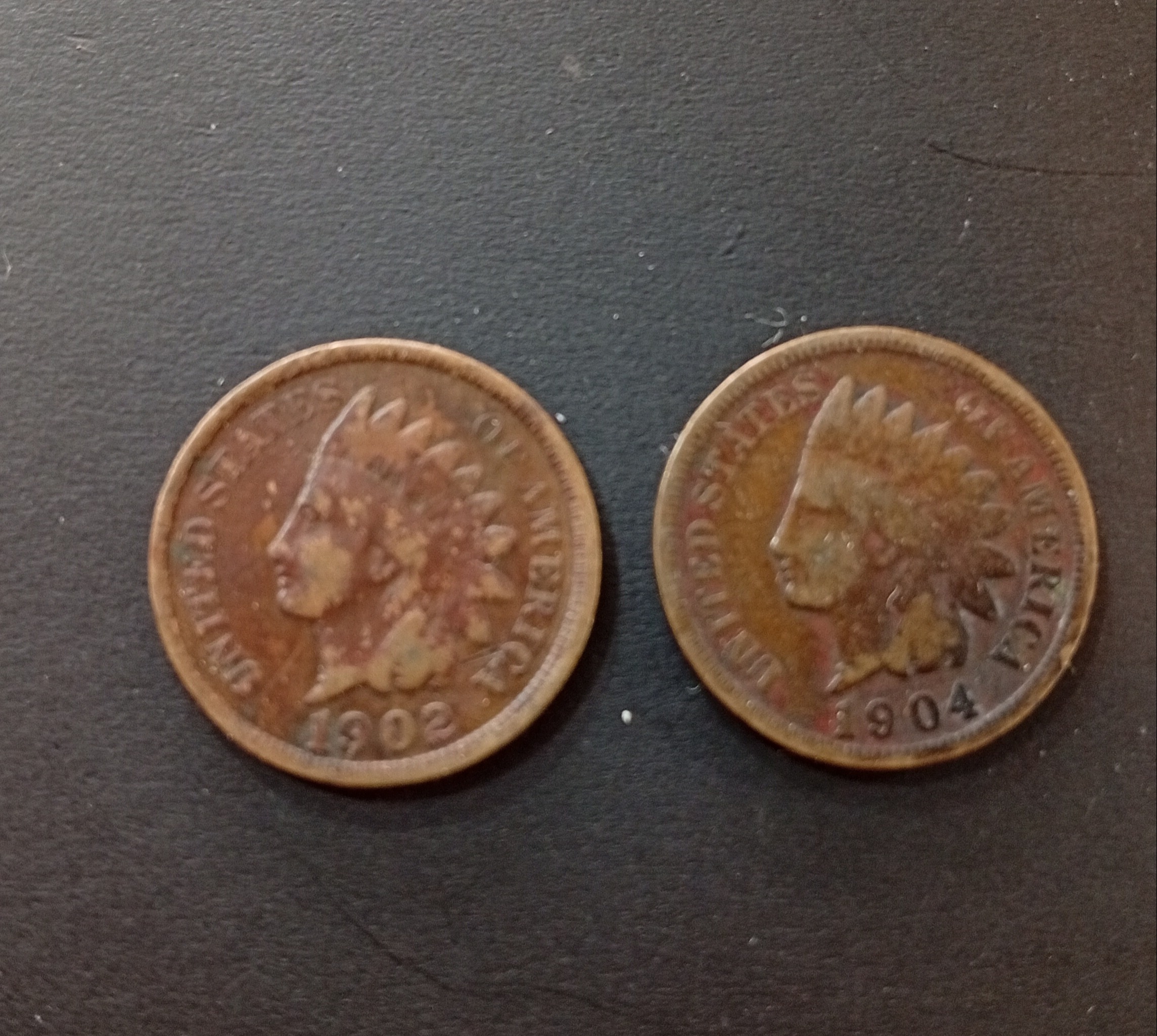 دو عدد سکه یک سنت آمریکا تاریخ 1902 و 1904 با تصویر سرخ پوست کیفیت سکهها غیر بانکی