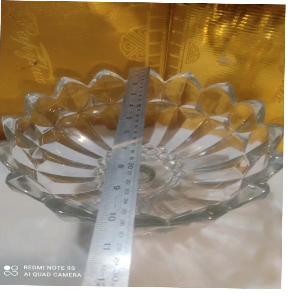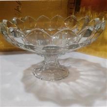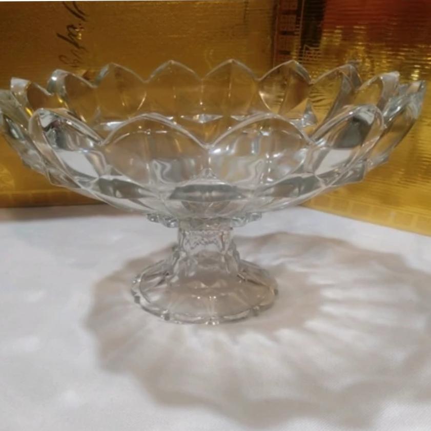 ظرف پذیرایی  کریستال میوه خوری یا آجیل خوری لبه کنگره ای ضخیم پایه دار باکیفیت خوب .توضیحات دارد