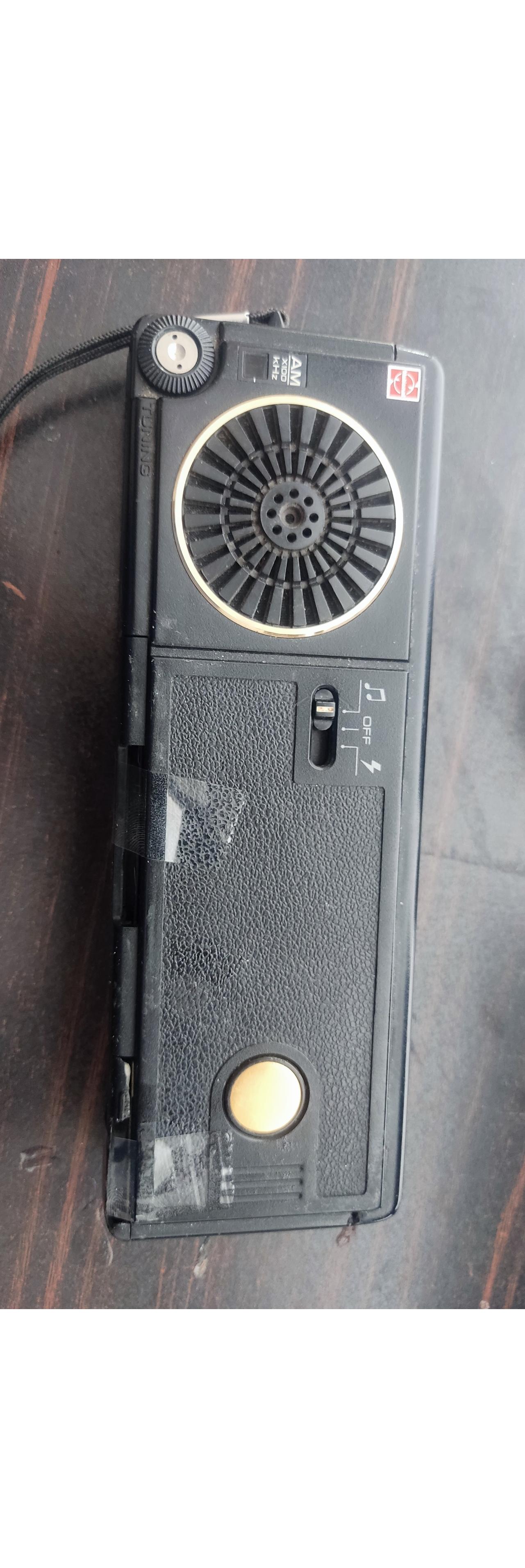 این دستگاه رادیو یک موج و دوربین عکاسی 110هست رادیو یک ایستگاه میگیره دوربین شاتر میزند ظاهر برابر تصاویر درب پشت و درب باتری با نوار چسب باید نگه داشته بشه یا تعمیر کنید کاری کلکسیونی و کمیاب