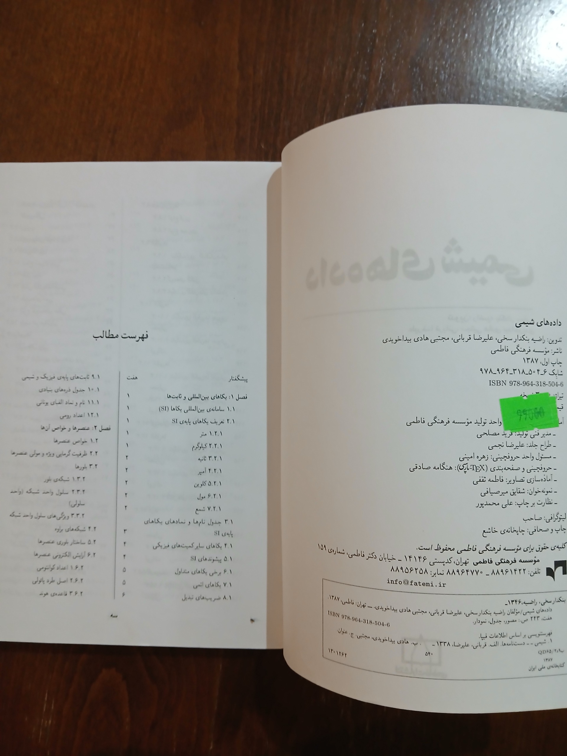 داده های شیمی  / انتشارات فاطمی / نایاب