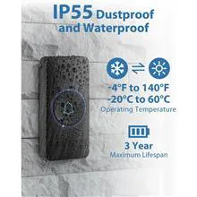 فرستنده با عملکرد بالا : مصرف برق بسیار کم . از یک باتری لیتیومی استفاده می کند که دارای حداکثر طول عمر 3 سال است . IP55 ضد گرد و غبار و ضد آب ؛ محدوده دمای کار از 4 درجه فارنهایت تا 140 درجه فارنهایت . در شرایط مختلف آب و هوایی سخت مقاومت می کند برد بی سیم 1300 FT / 400 M: 2 گیرنده پلاگین گنجانده شده است . با سایر تجهیزات خانه شما یا همسایگان شما تداخل نخواهد داشت . تضمین می کند که هرگز بازدیدکنندگانی را از دست نخواهید داد ، حتی اگر چندین اتاق دورتر باشید .52 صدای زنگ زیبا : بلندگوی استریو 40 میلی متری صدایی غنی و واضح ارائه می کند . دکمه بعدی یا قبلی را فشار دهید تا به راحتی از بین 52 ملودی انتخاب کنید . 5 سطح صدا قابل تنظیم ، با حداکثر ولوم 115 دسی بل . هر وقت کسی در خانه شما زنگ می زند از ملودی های دلنشین لذت ببرید . عملکرد حافظه : آخرین آهنگ تنظیم شده و سطح صدا را پس از قطع برق حفظ می کند . بدون نیاز به بازنشانی به تنظیمات قبلی خود . طراحی راحت و آسان برای تجربه کاربری بهتر راه اندازی آسان : گیرنده های پلاگین AVANTEK RB-1/CR-1 اضافی را می توان برای افزایش پوشش اضافه کرد . یا حق