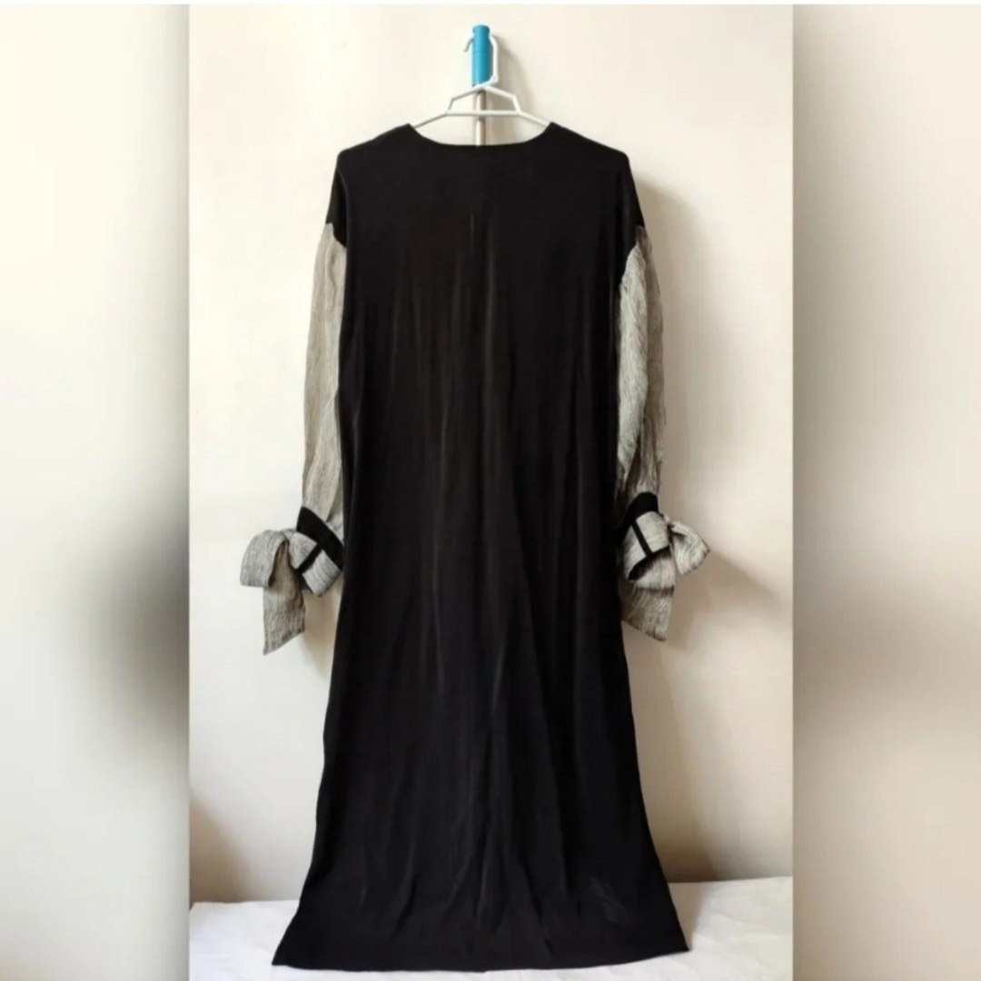 مانتو مشکی بلند ،تن خورش فوق العاده محشره ،جنس مانتو یه حالت شاین مات داره و آستیناش هم که دیگه نگم از دلبریش،،،، جلوش دکمه مخفی ریلی خورده ،یه کوچولو آستیناش پرز داده ولی زیاد مشخص نیست ،فاصله دو زیر بغل حدود 46 سانت و قد مانتو حدود 115 سانت هست