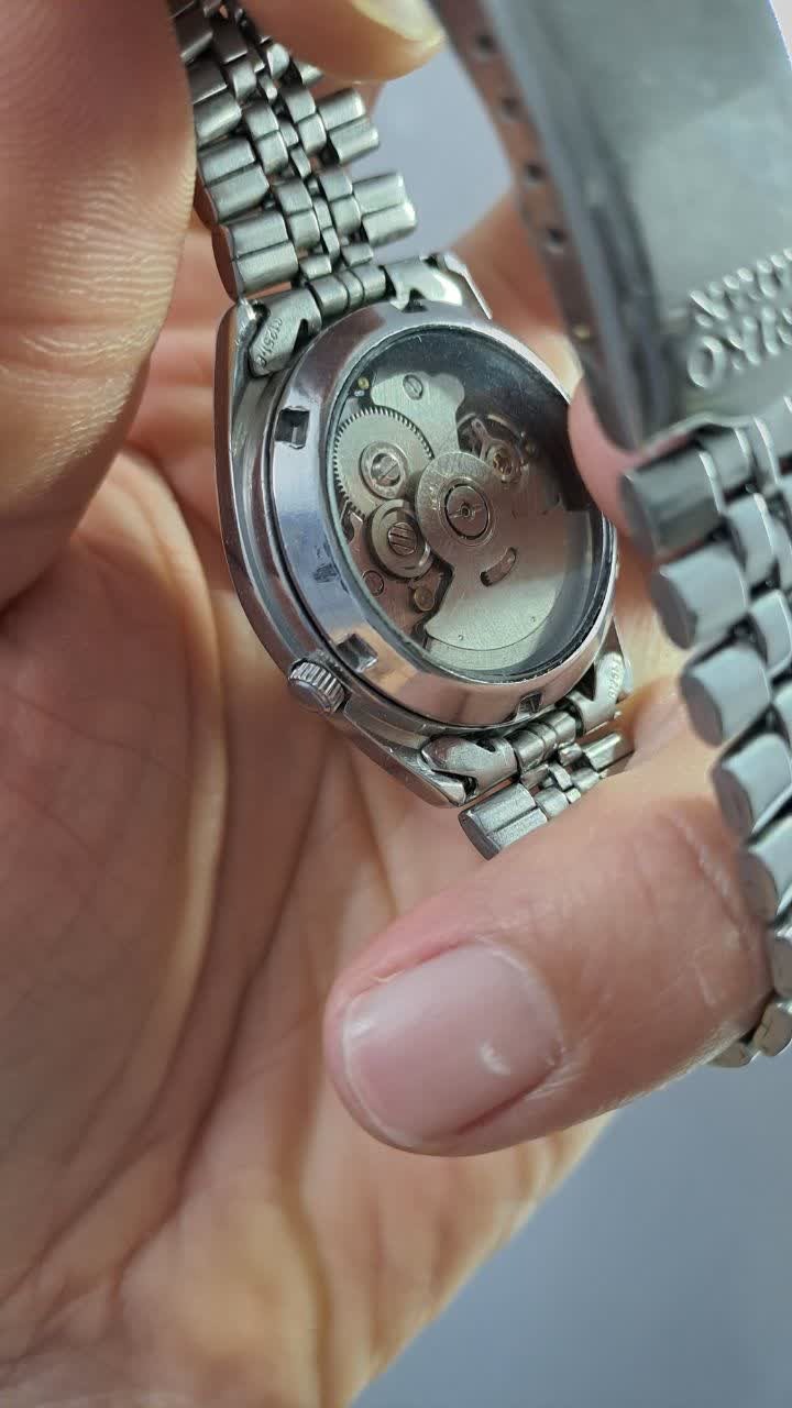یک عدد سیکو5 بسیار زیبا و منحصربفرد کلکسیونی تولید 1970 میلادی مدل پشت شیشه ای یا موتور نمایان