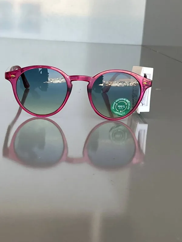 - رنگ فرم: صورتی شفاف با لنزهای گرادیانت آبی