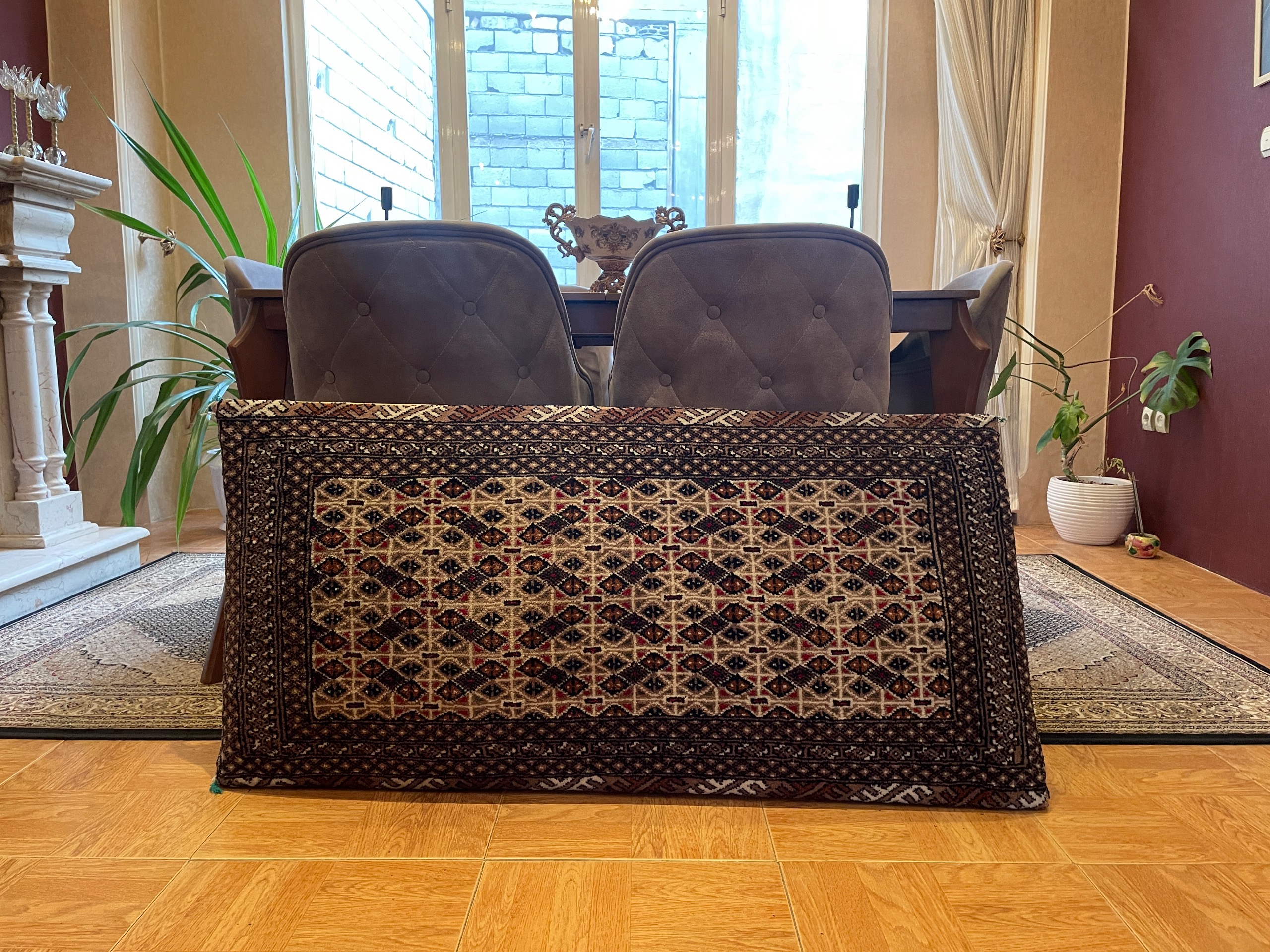 یک جفت پشتی طرح ترکمن دست باف اصل پشم