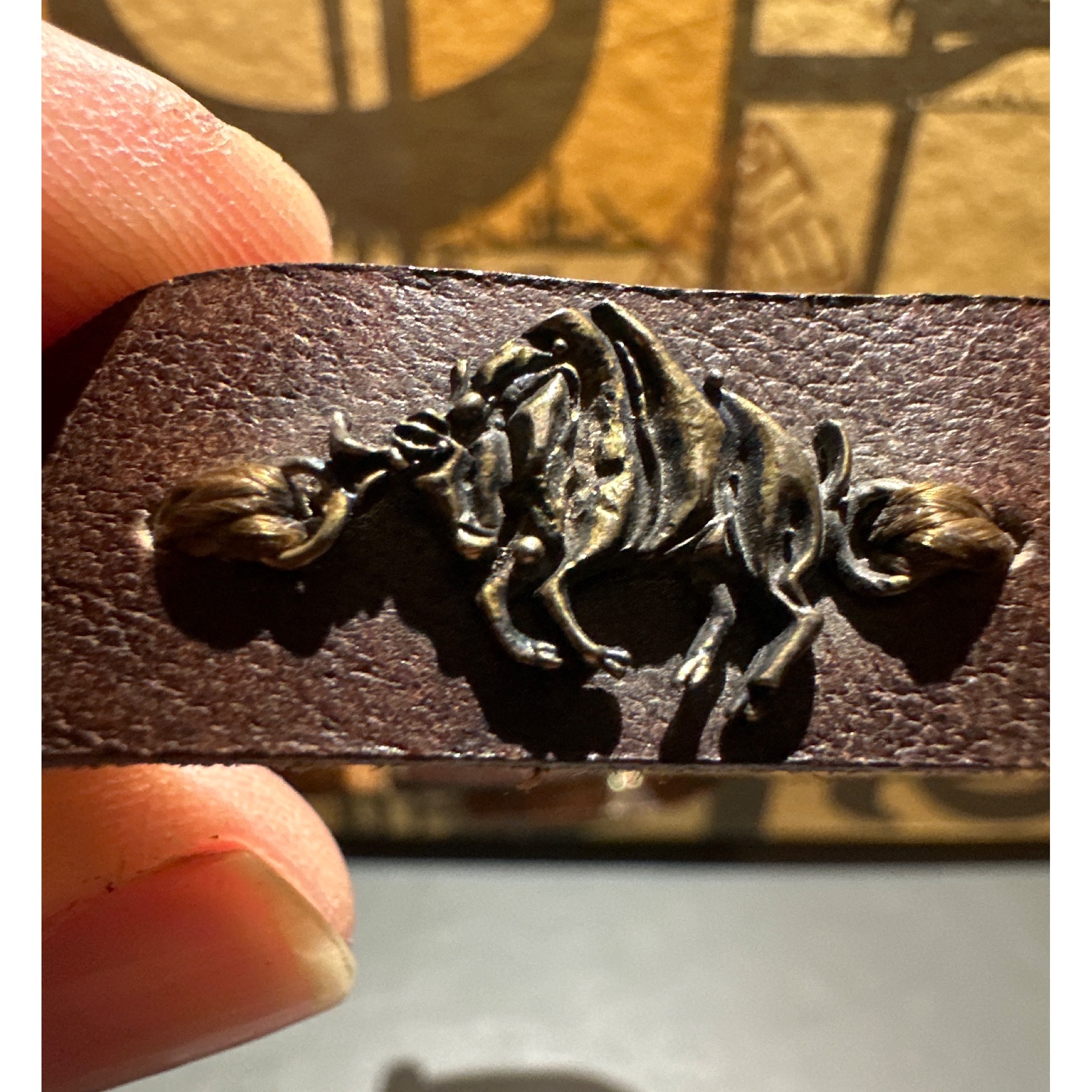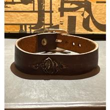 یک دستبند چرمی از چرم بوفالو اصل اورجینال قدیمی با یک پلاک نقره عیار 925 ( گاو . ماه اردیبهشت ) .