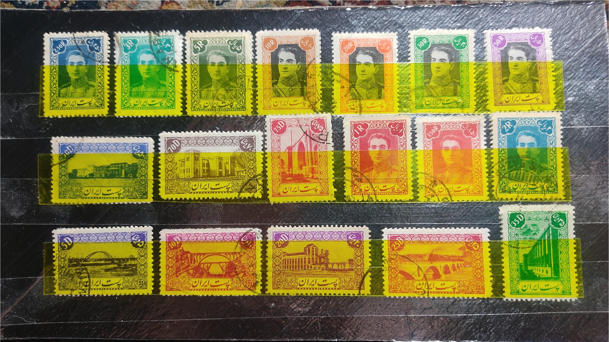 ست شامل 18 قطعه تمبر از 5 دینار تا 50 ریال ارزشمند تمبرهای سری اول پستی