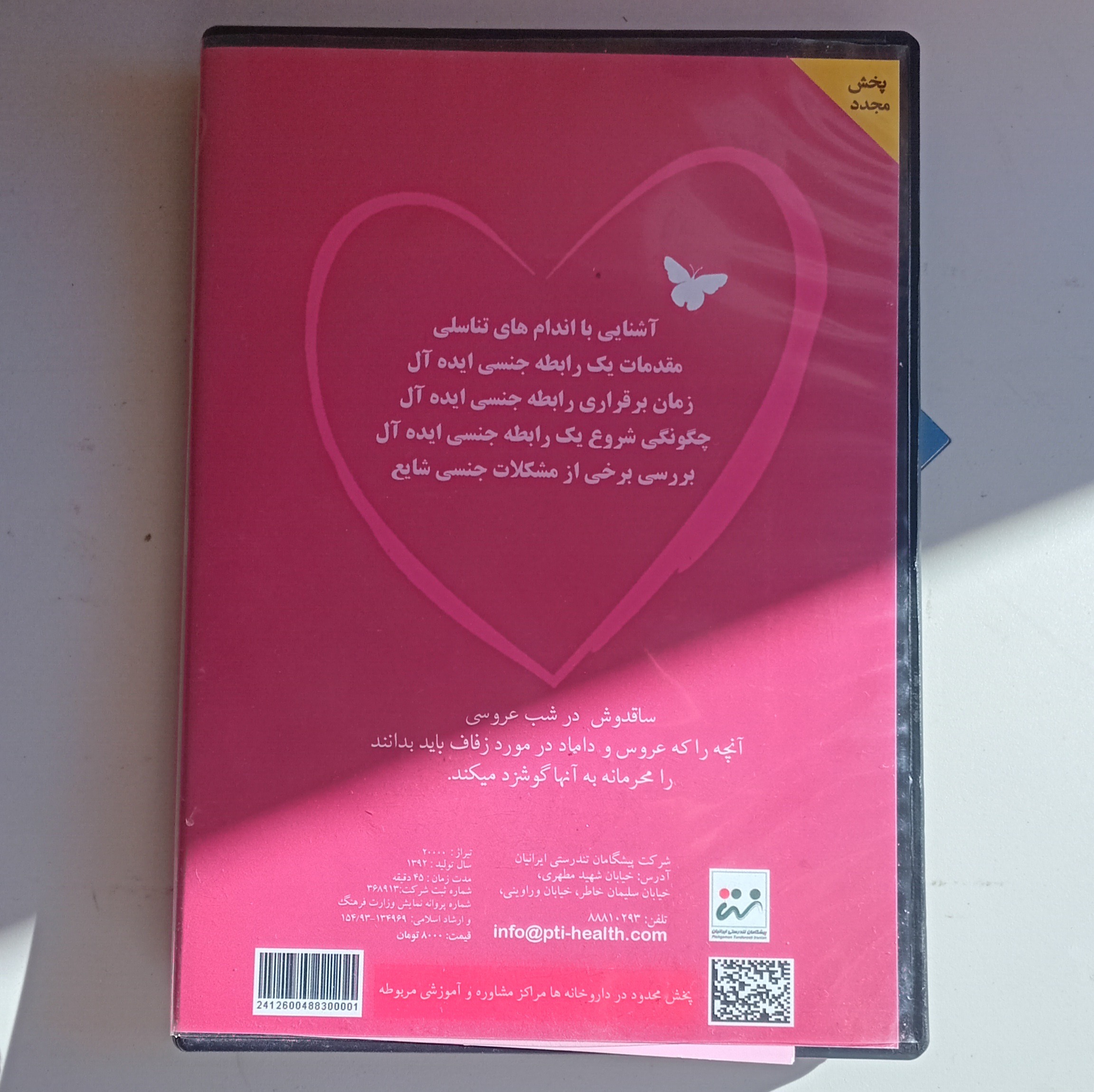 یک عدد لوح فشرده ( سی دی)فیلم آموزشی ساقدوش( پیرامون مسائل جنسی یا زناشویی عروس و داماد)