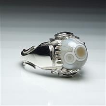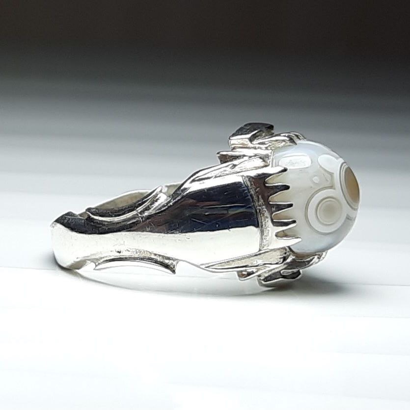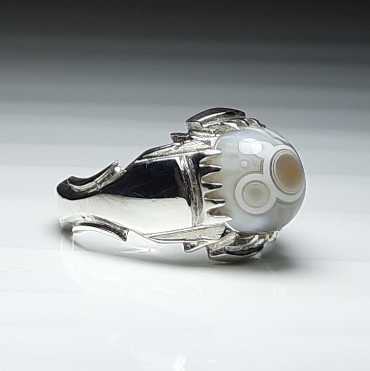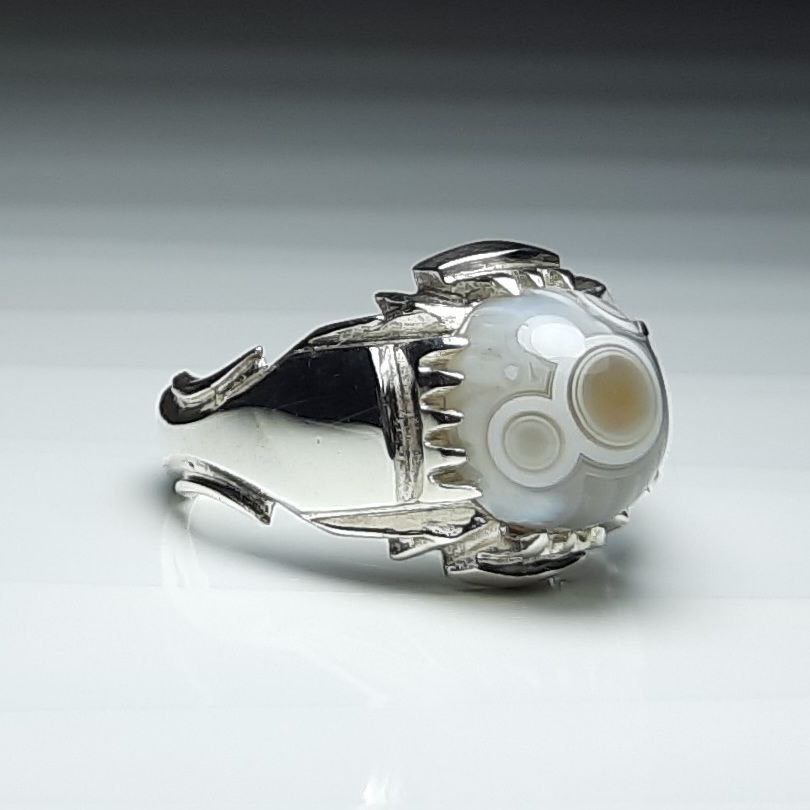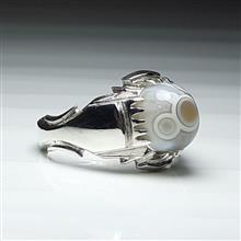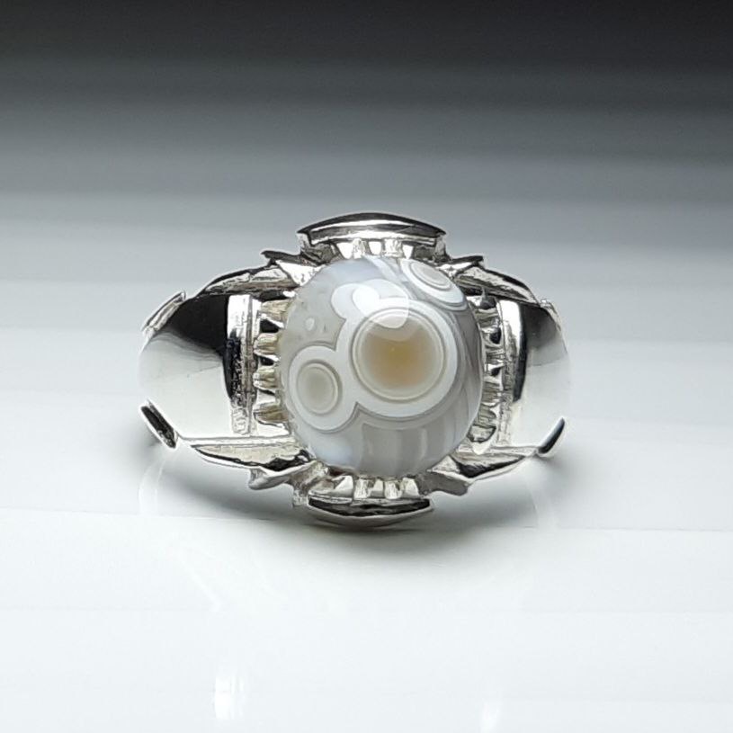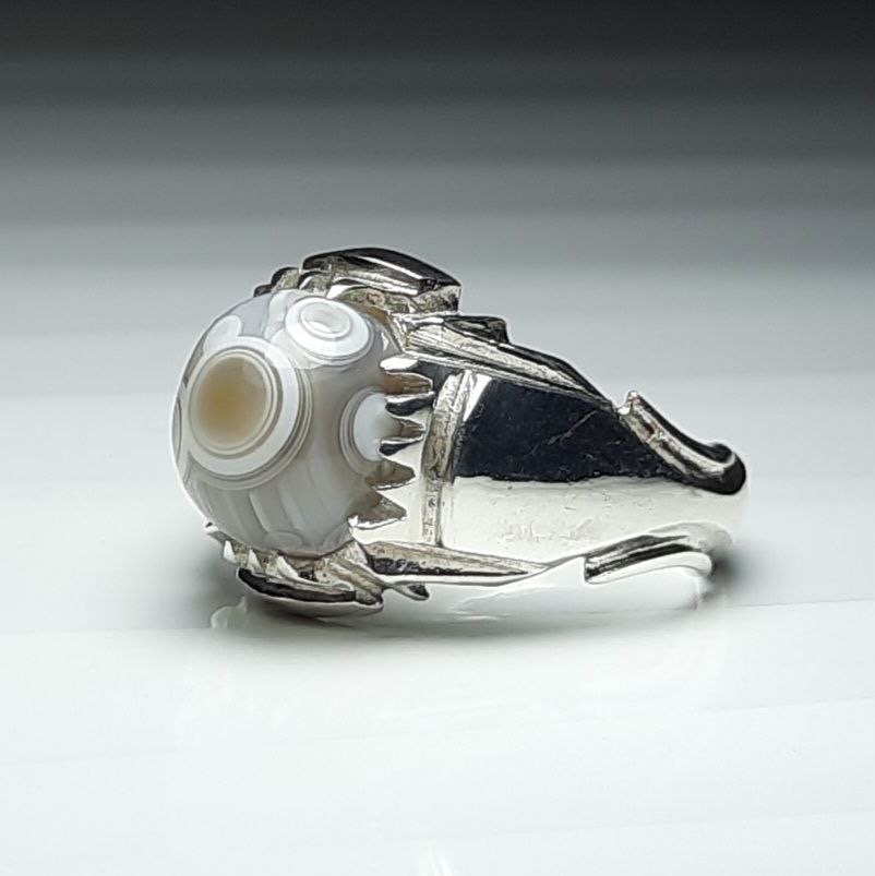 انگشتر نقره عیار استاندارد 925 باباقوری میزان و منظم پر چشم طبیعی و اصل معدنی هند ، نی نی دار و طوقدار و کلکسیونی