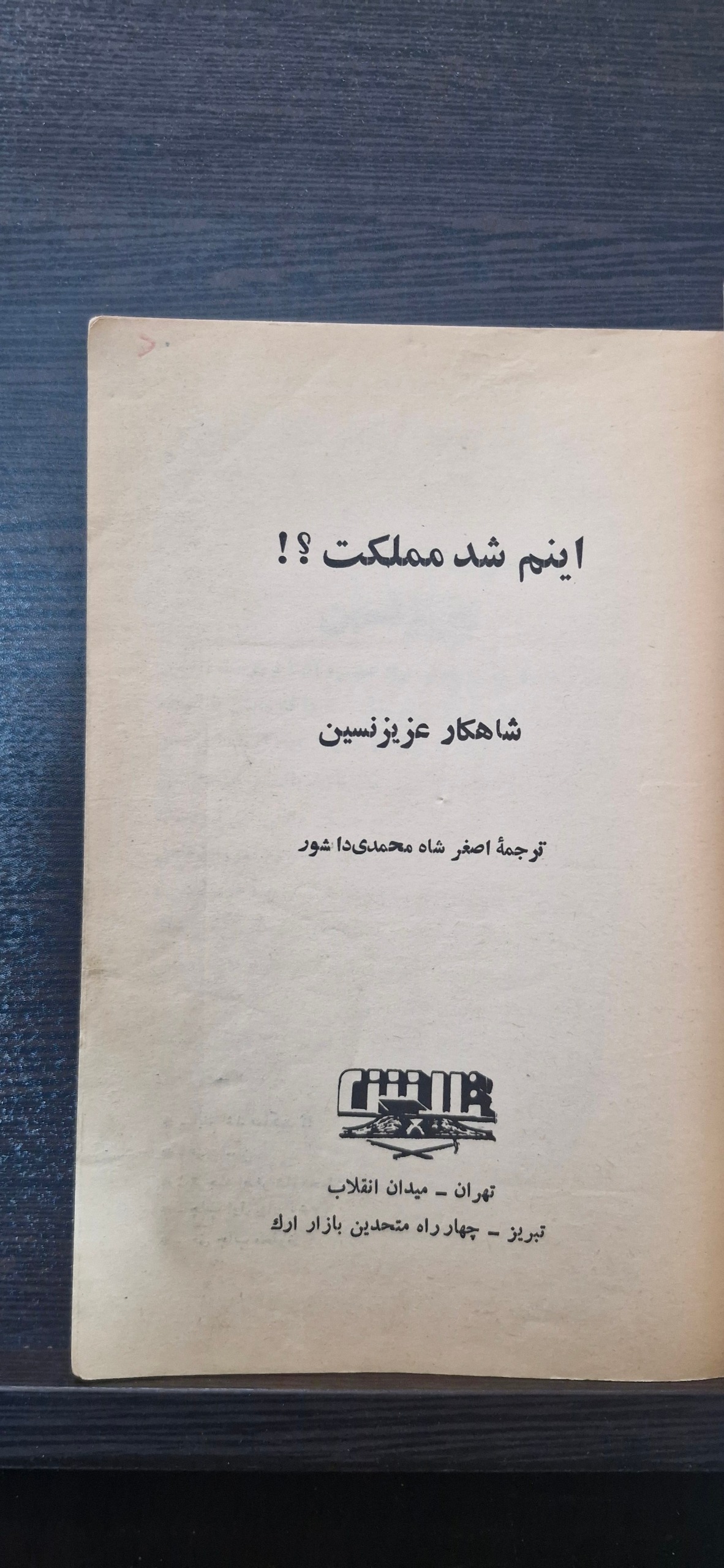 کتاب قدیمی طنز اینم شد مملکت از عزیز نسین 1360 نسخه اصلی قدیمی کامل 145 صفحه خریدار محترم لطفا با دقت به توضیحات هر کالا دقت بفرمایید کالاها کیفیت شان مطابق با تصویر هست و انواع کتاب، مجله، روزنامه، اسناد و عکسهای قدیمی از دوره قاجار تا پهلوی و اوایل