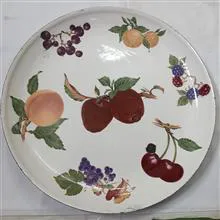 دیس فلزی لعابی مهردار به قطر 27 سانت و در پشت و دور دیس پریدگی لعاب دارد .