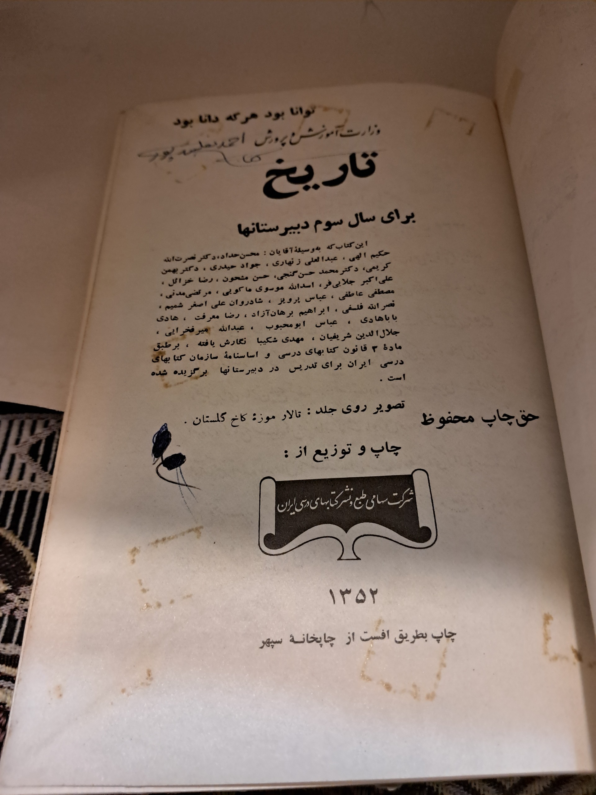 تاریخ برای سال سوم دبیرستان1352