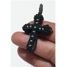 آویز گردنی صلیب منجوق دوزی شده کلکسبونی