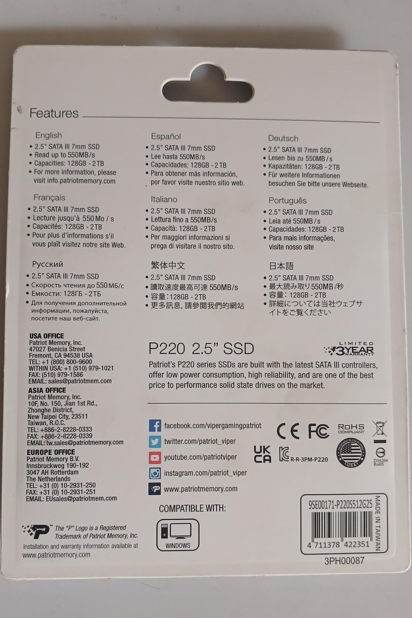 هارد 512GB SSD Patriot نو با گارانتی الماس
