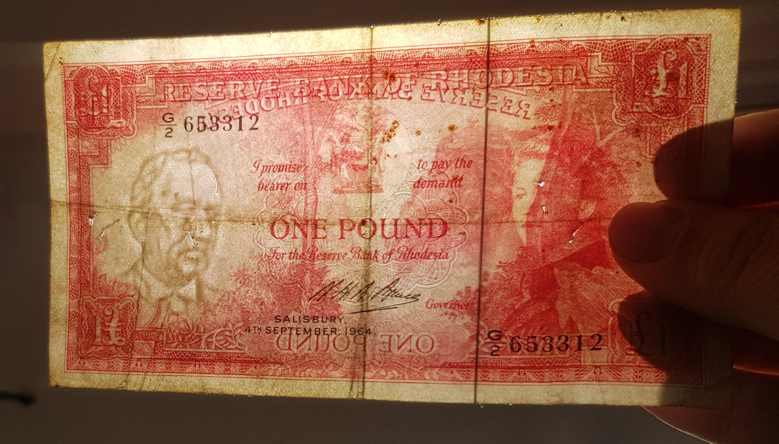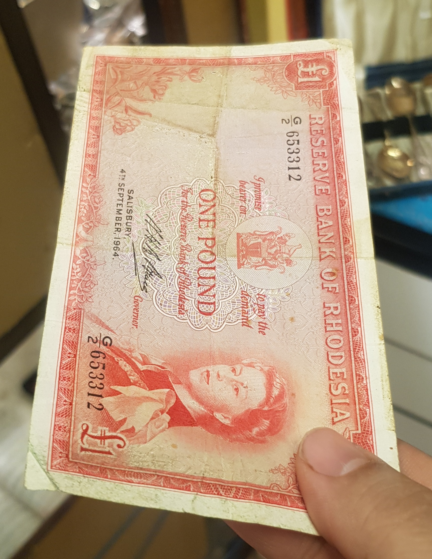 اسکناس بسیارکمیاب 1 پوند رودزیا تصویر ملکه
