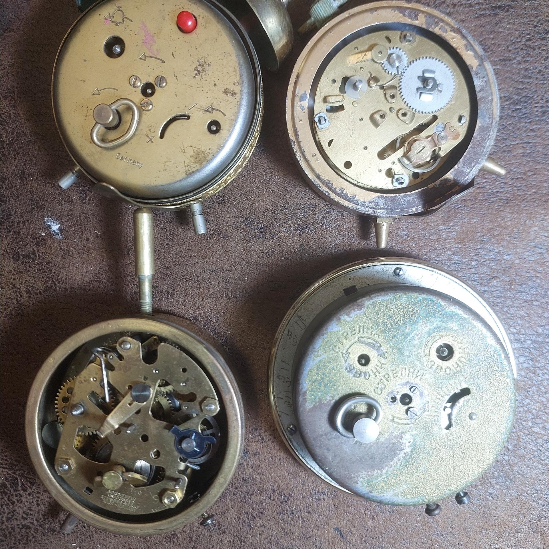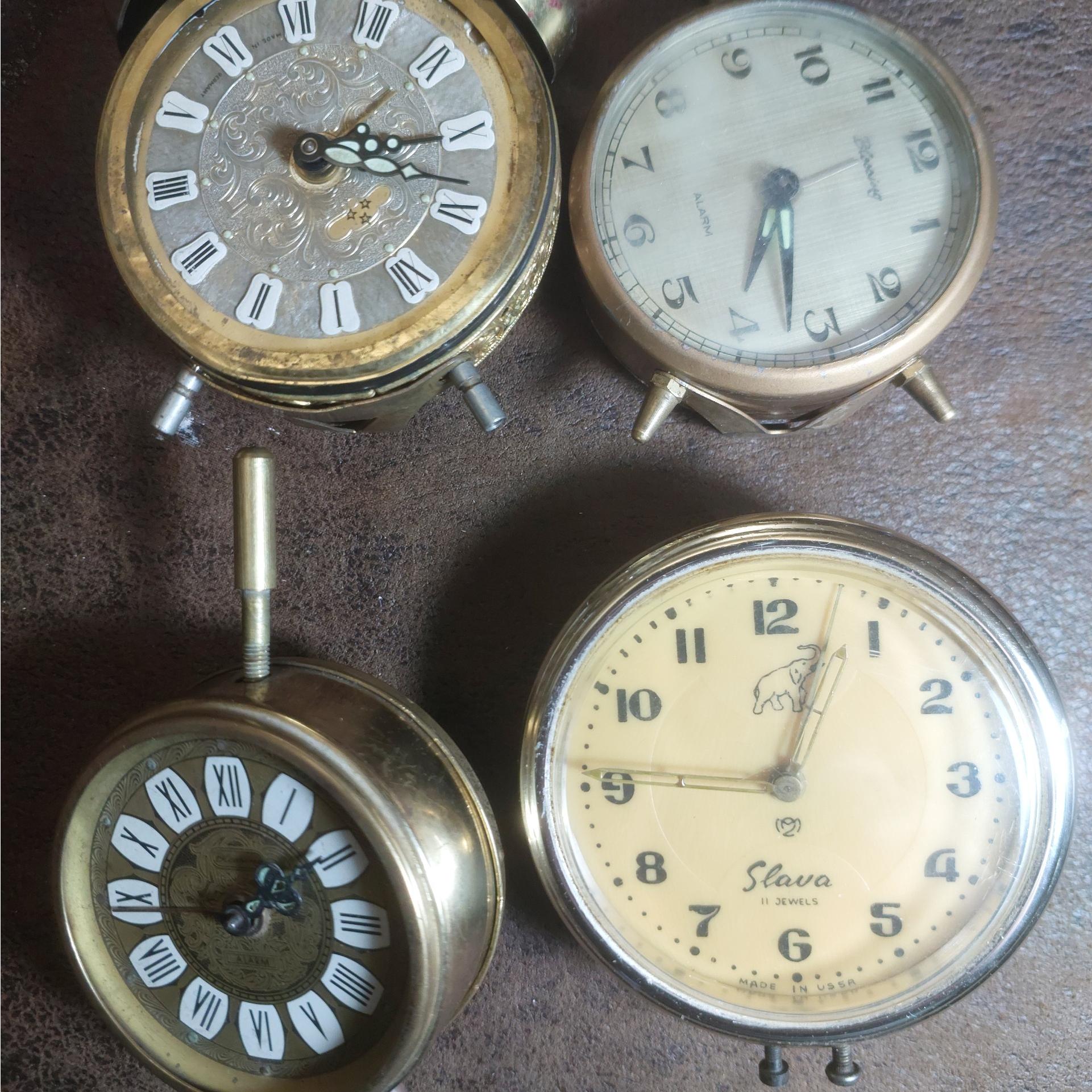 سلام چهار عدد ساعت رومیزی که دو عدد بلزینگ المانی و یک عدد اسلوا روسی و یک عدد هم بلزینگ ژاپنی موتورها هر چهار عدد سالم دو عدد شیشه ندارد برخی لوازم مثل پایه و درب پشت کم دارد عودت ندارم