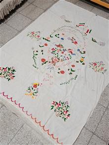 کیفیت مطابق تصویر .قدمت پهلوی .سایز 125 در 160 سانت .گلدوزی ها تماما کار دست .در چند نقطه سوراخ ریز دارد که نسبت به قدمت طبیعیه قیمت هم با توجه به همین مورد کمتر گذاشته شده