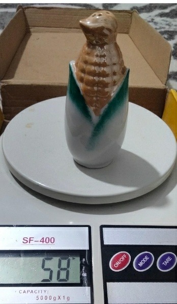 یک عدد نمکدان معروف ب نمکدان ذرت ( نمکدان ب شکل پنگوئن و ذرت) قدیمی دست ساز دوره پهلوی..