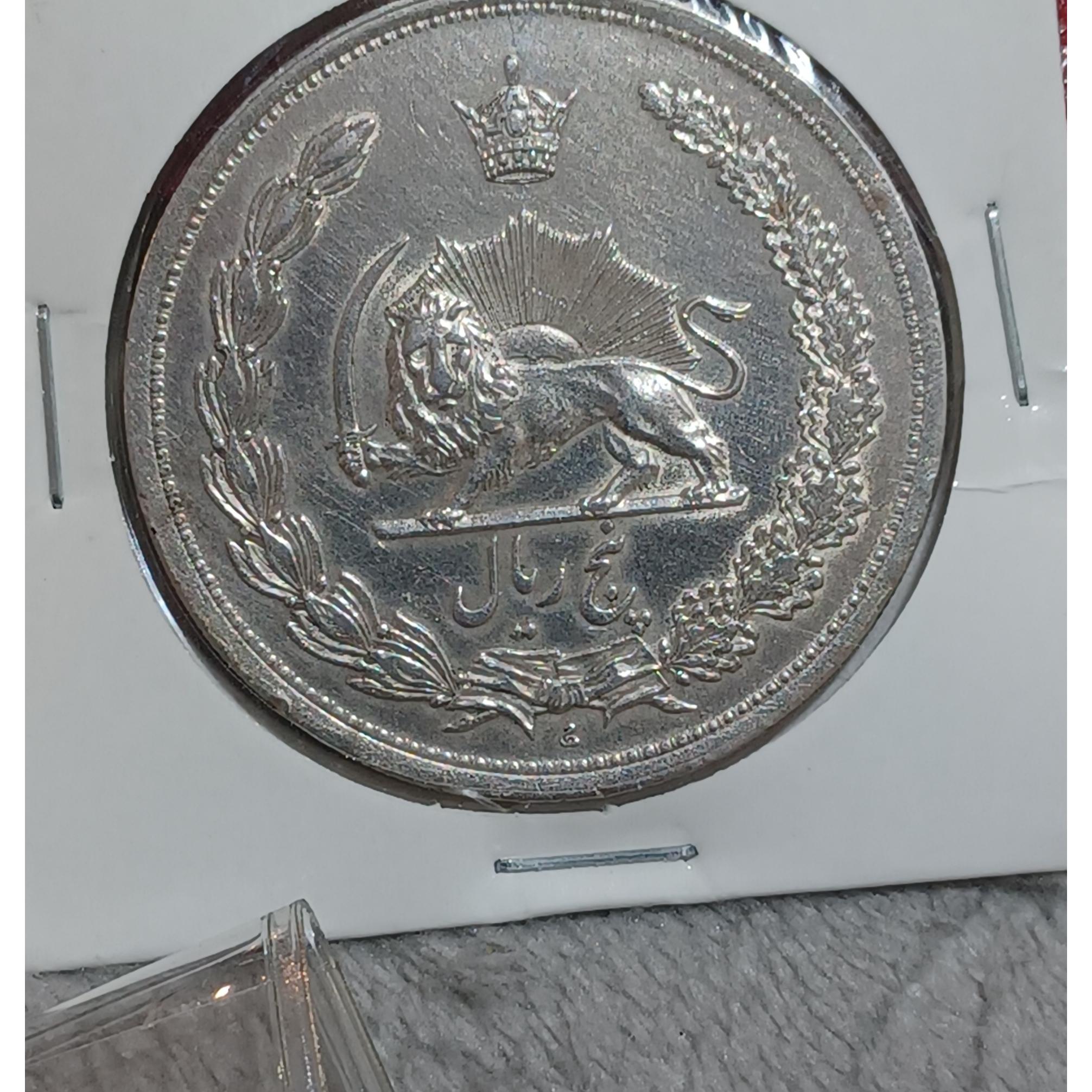 پنج ریال نقره رضا شاه پهلوی بسیار ارزشمند و کلکسیونی