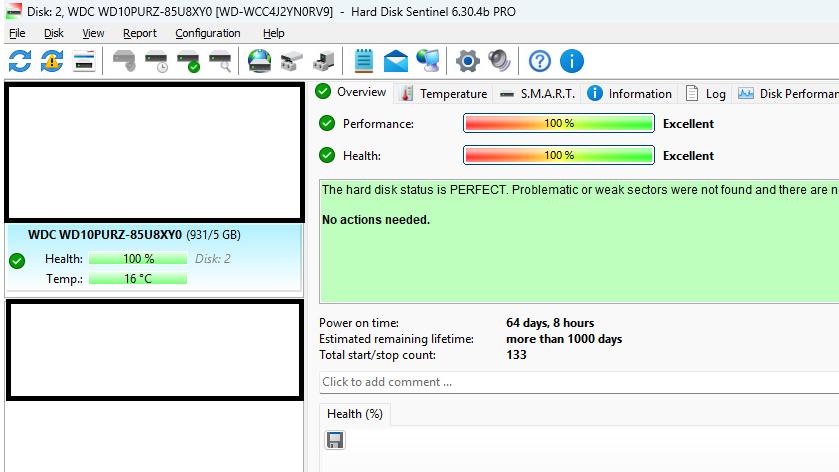همان طور که در عکس دوم و تست سلامتی مشاهده می کنید. هارد دیسک تقریبا صفر می باشد.