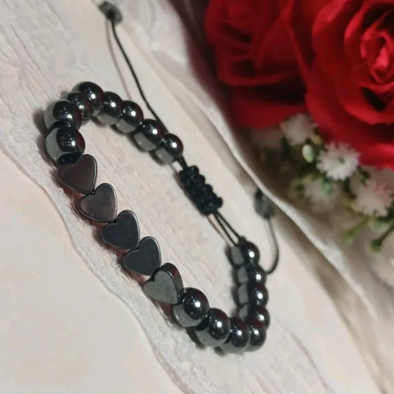 دستبند ترکیبی مهره حدید قلبی و گرد